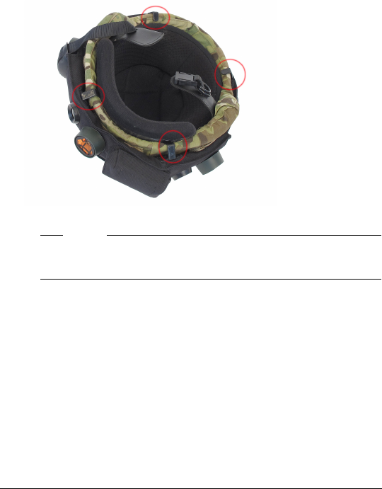 1. Attach the four hooks around the helmet.