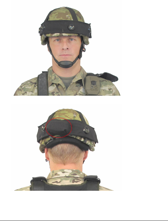 2. Put on the helmet. The electronic unit should be placed in