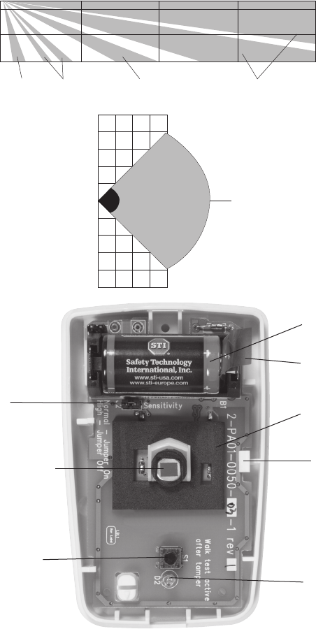 · 44 ft. range and 90 degree field of view (45 degrees to each side).