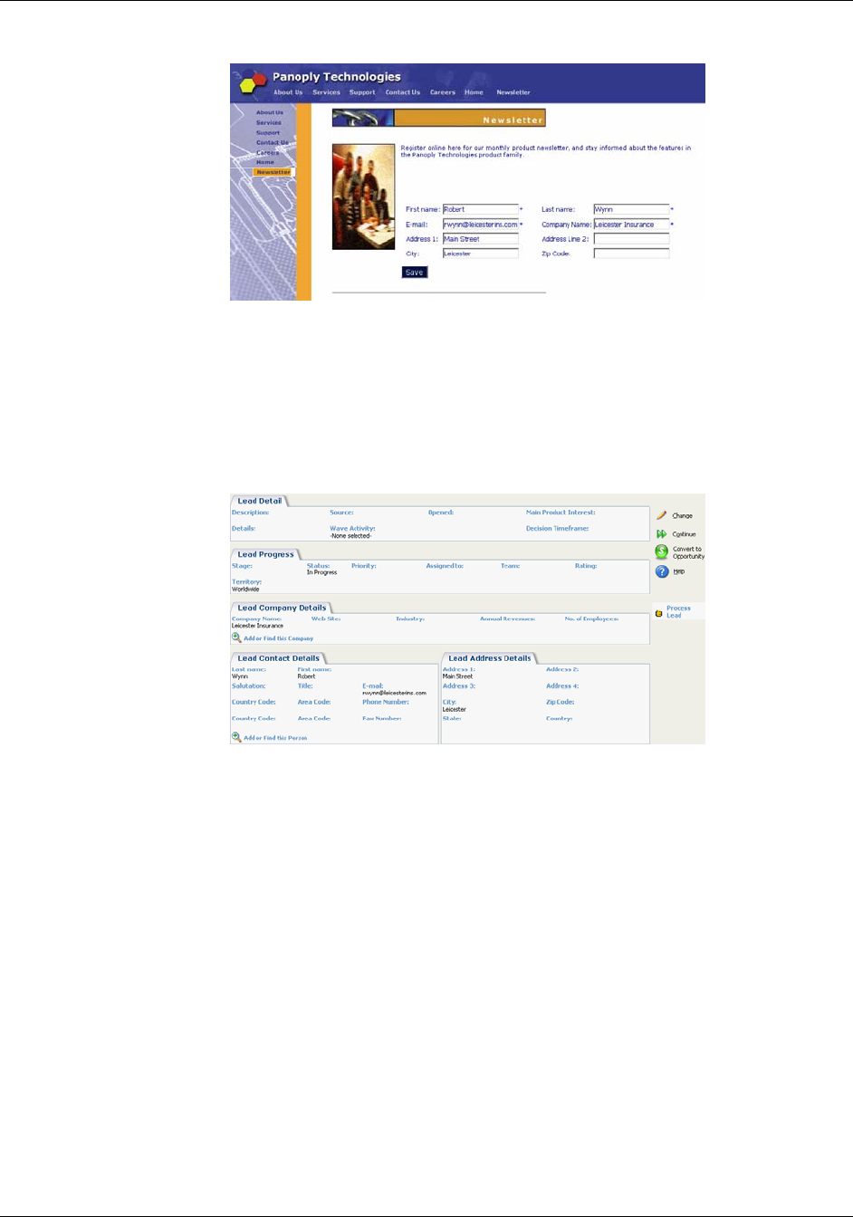 in CRM. From here, the lead can be assigned to a CRM user, the visitor can