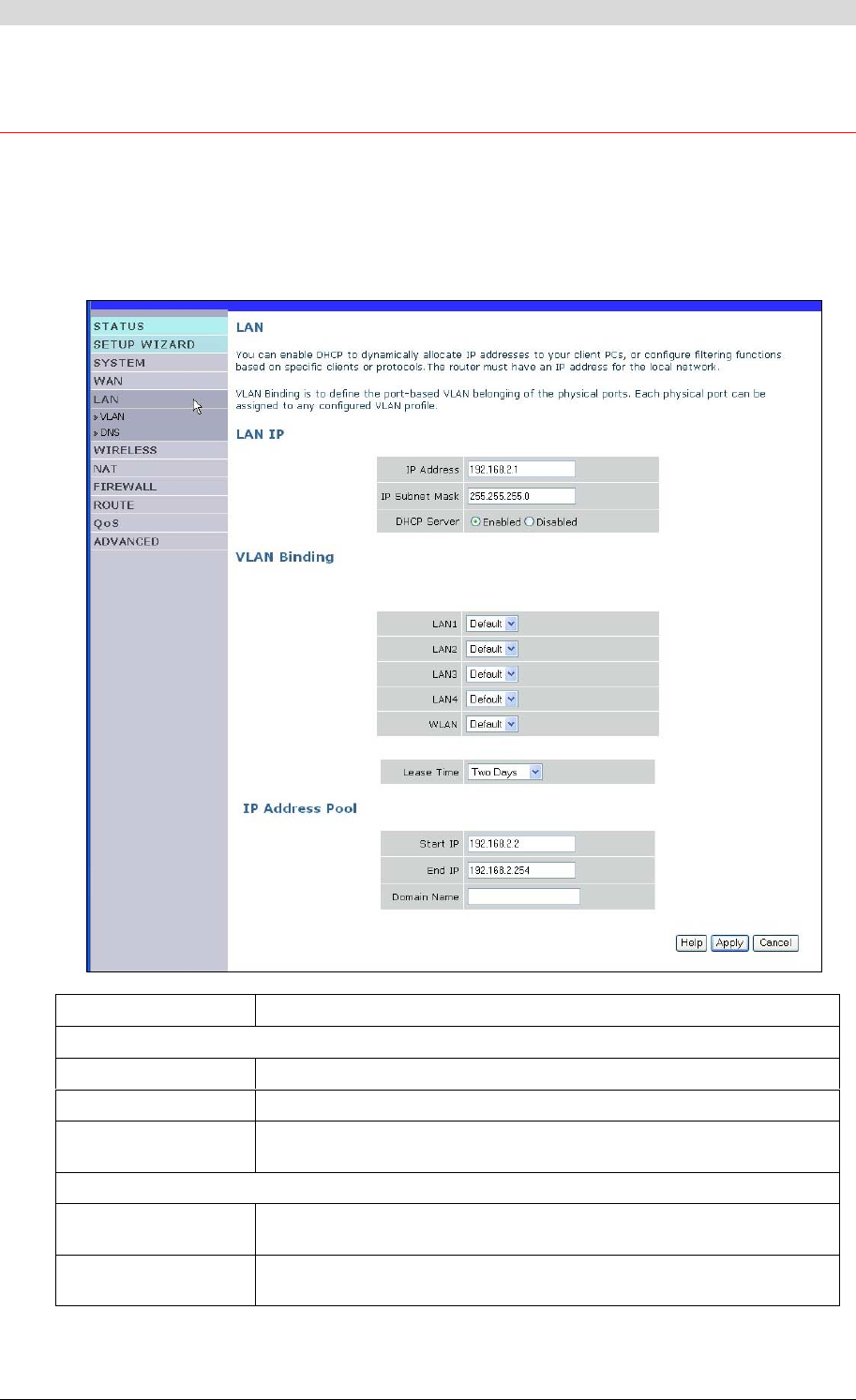 VLAN1 binding LAN1, LAN2, LAN3, LAN4,
