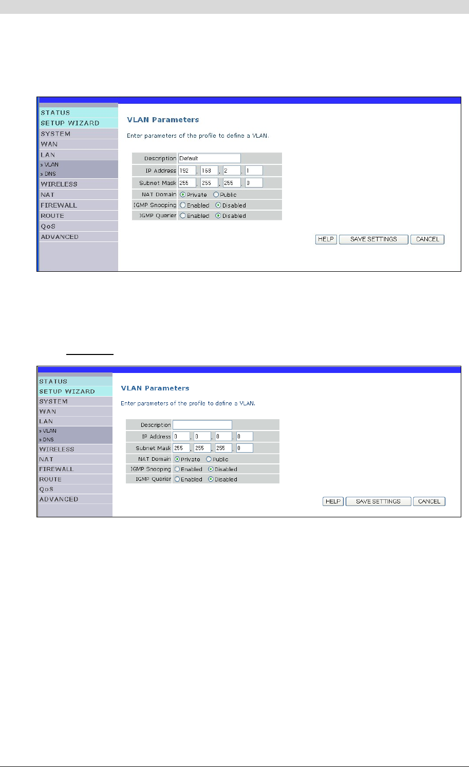 ¾ the default configuration on the local area network side Section E.3