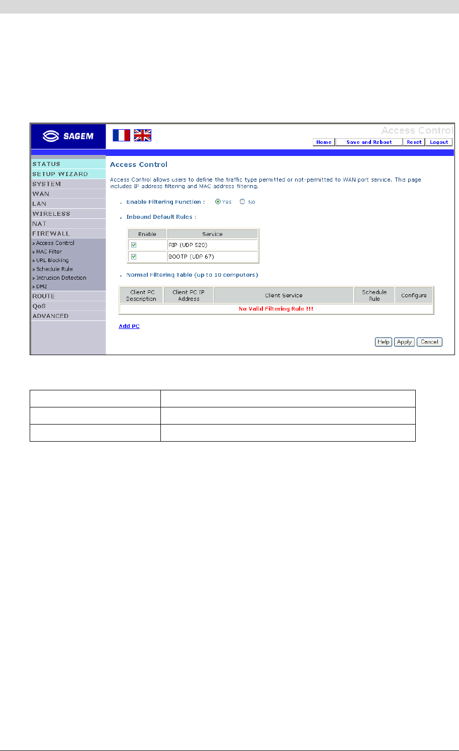 This section gives the default factory settings for the SAGEM F@st™ 1500. The