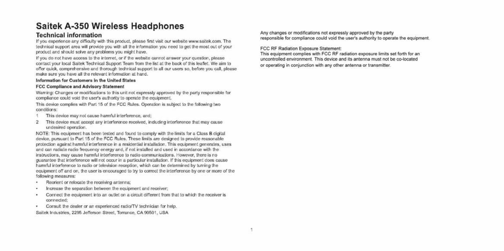 Saitek Electronics (SHENZHEN) Ltd Saitek A-350 Wireless Headphone Print dmeQSGA350