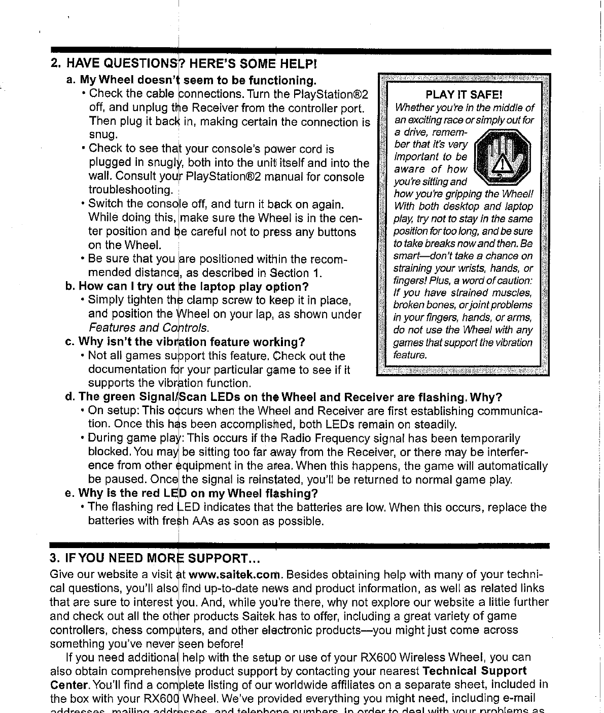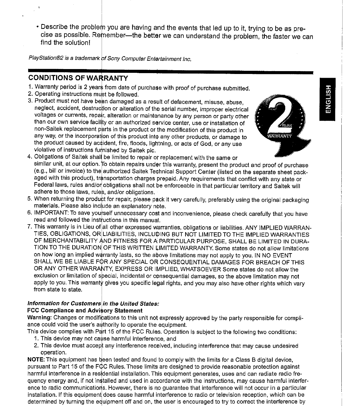 Saitek Electronics PW11X2-2 PS2 Controller User Manual