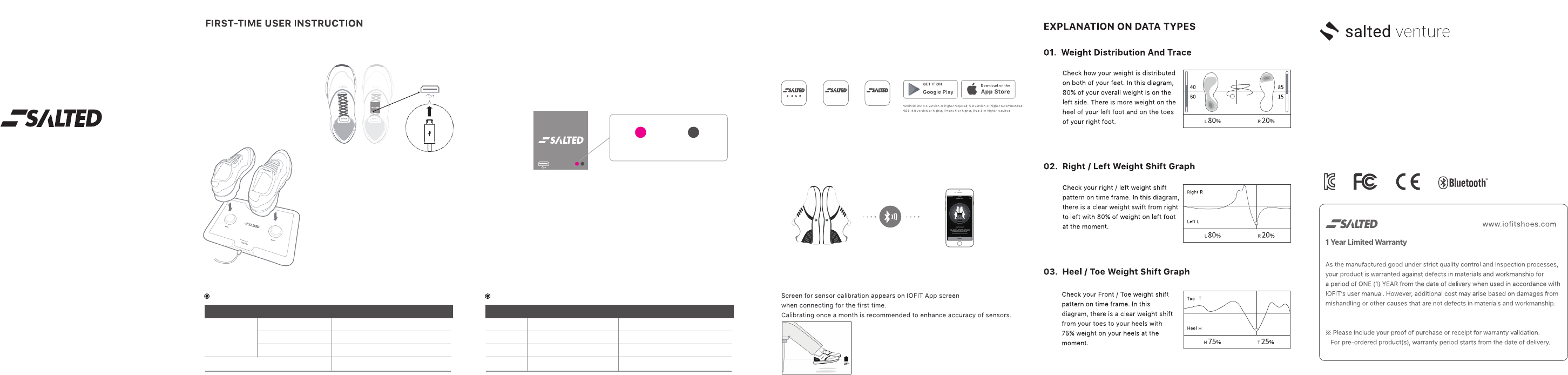 01. Charging shoes 02. Turnining the power on 04. Install and Activate SALTED application.