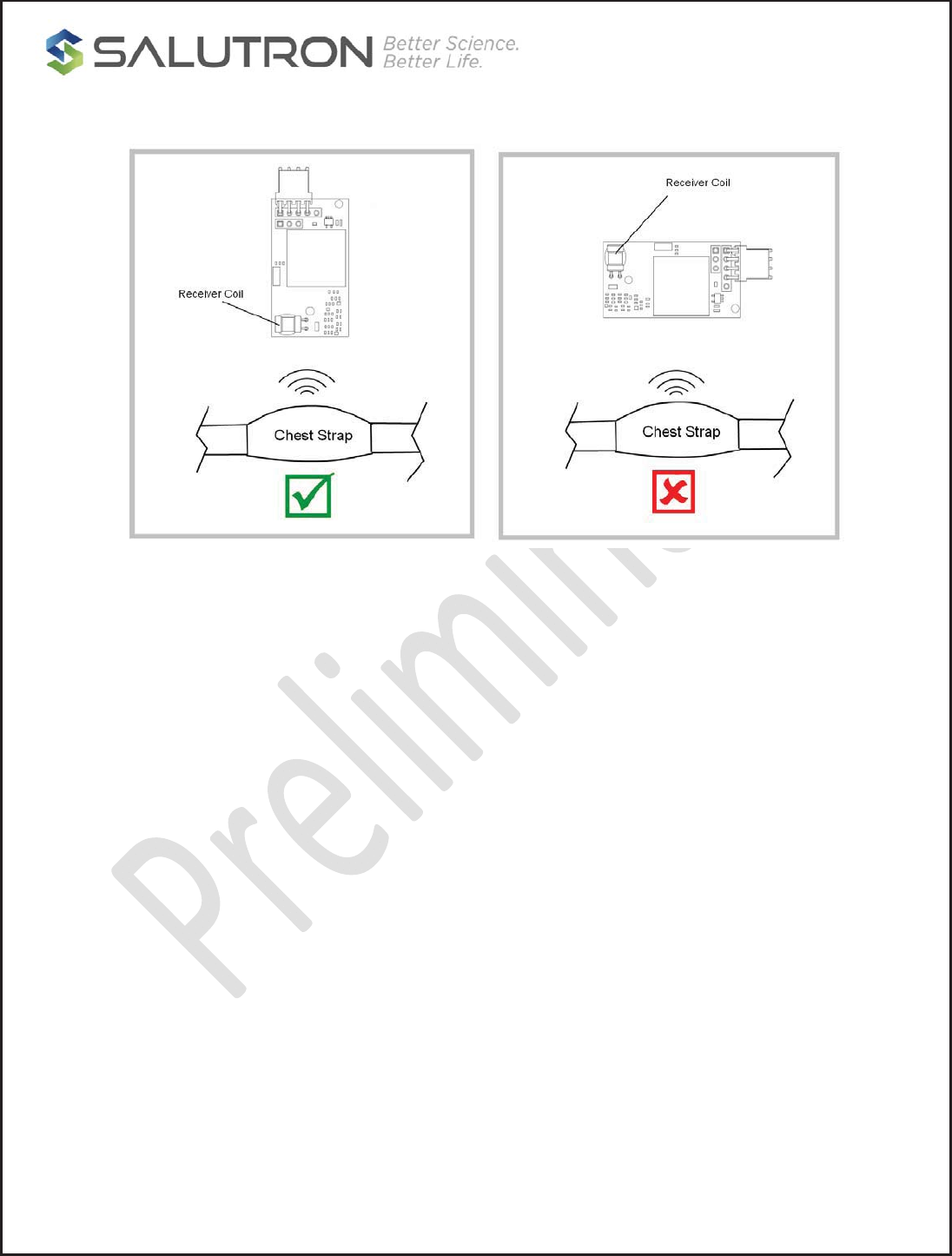 receiving coil on the HRM wireless module should be in horizontal or parallel with the