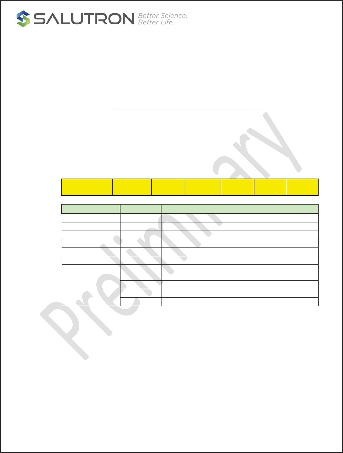 Copyright 2016, Salutron, Incorporated Revision 1.1 Revision Date:07/31//17 Page: 3 of 23