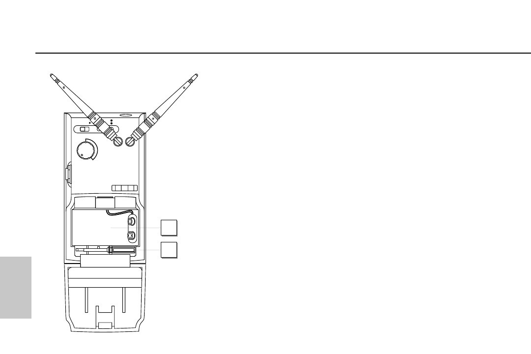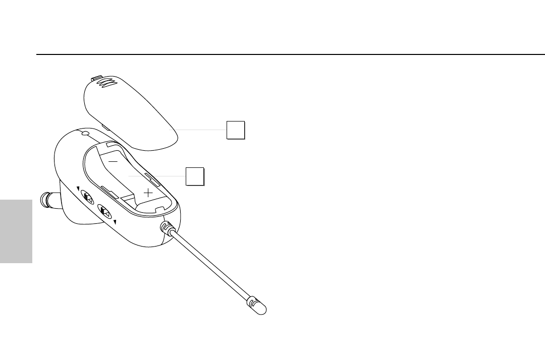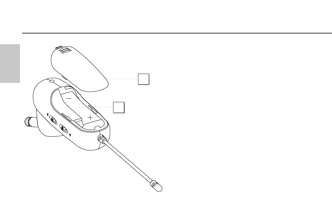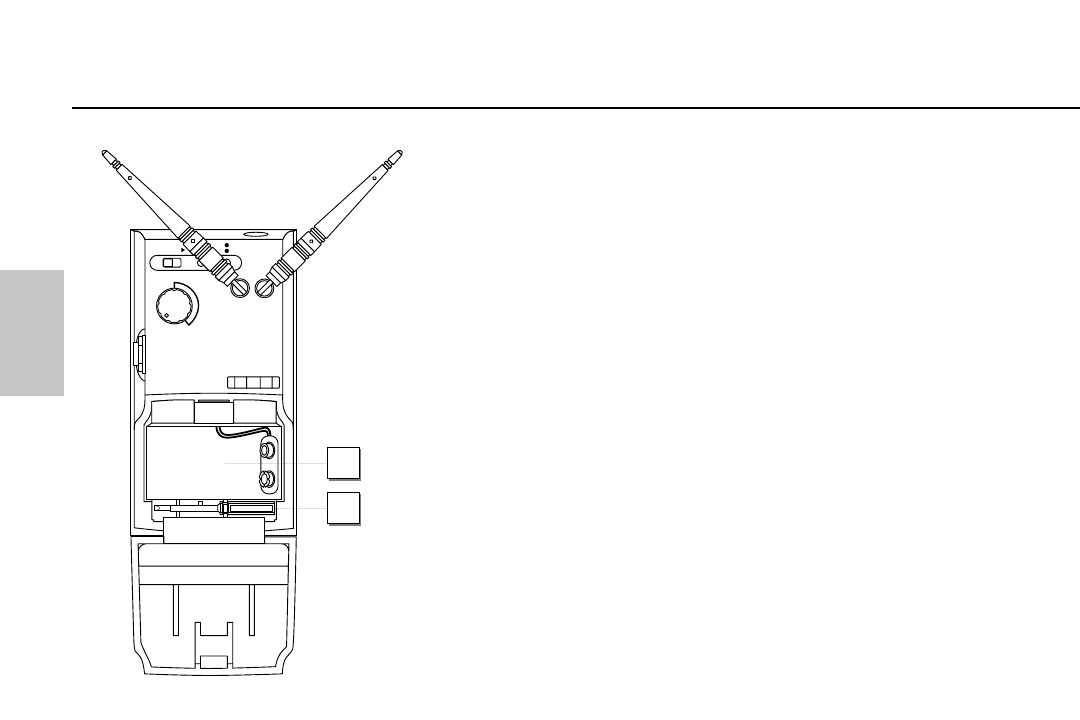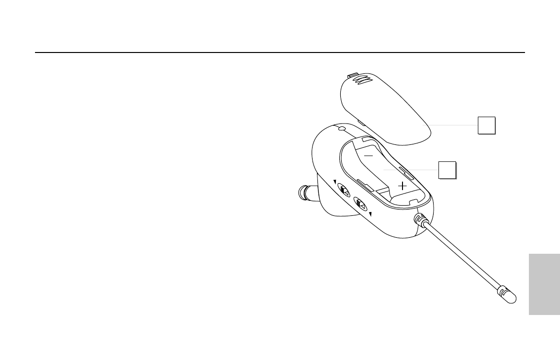 3. Set the power switch on your AF1 or AG1 transmitter to the “off” position (away from the arrow) and place a fresh AAA battery in it.