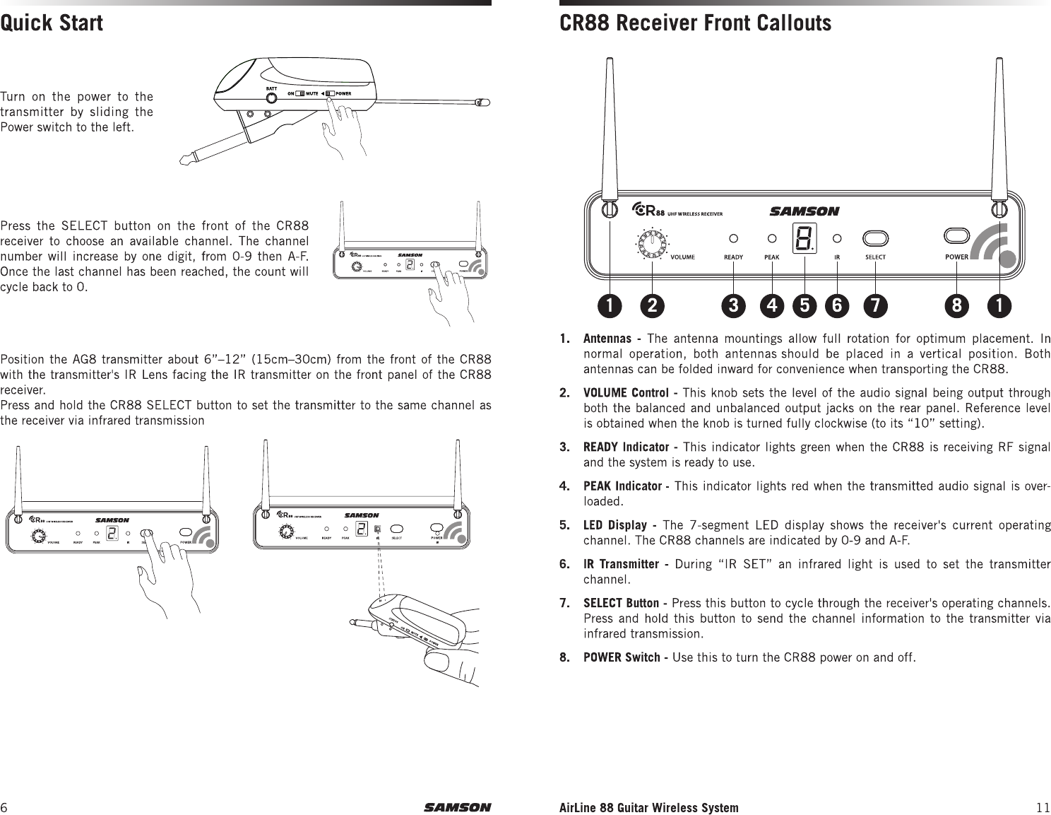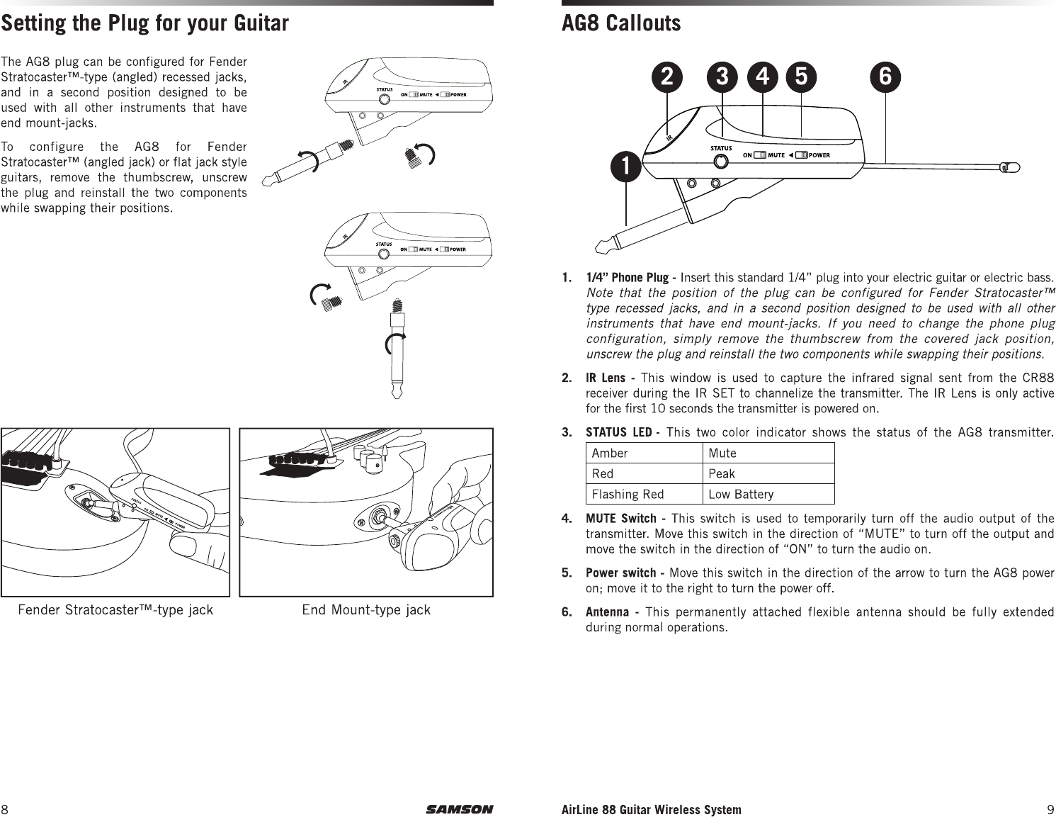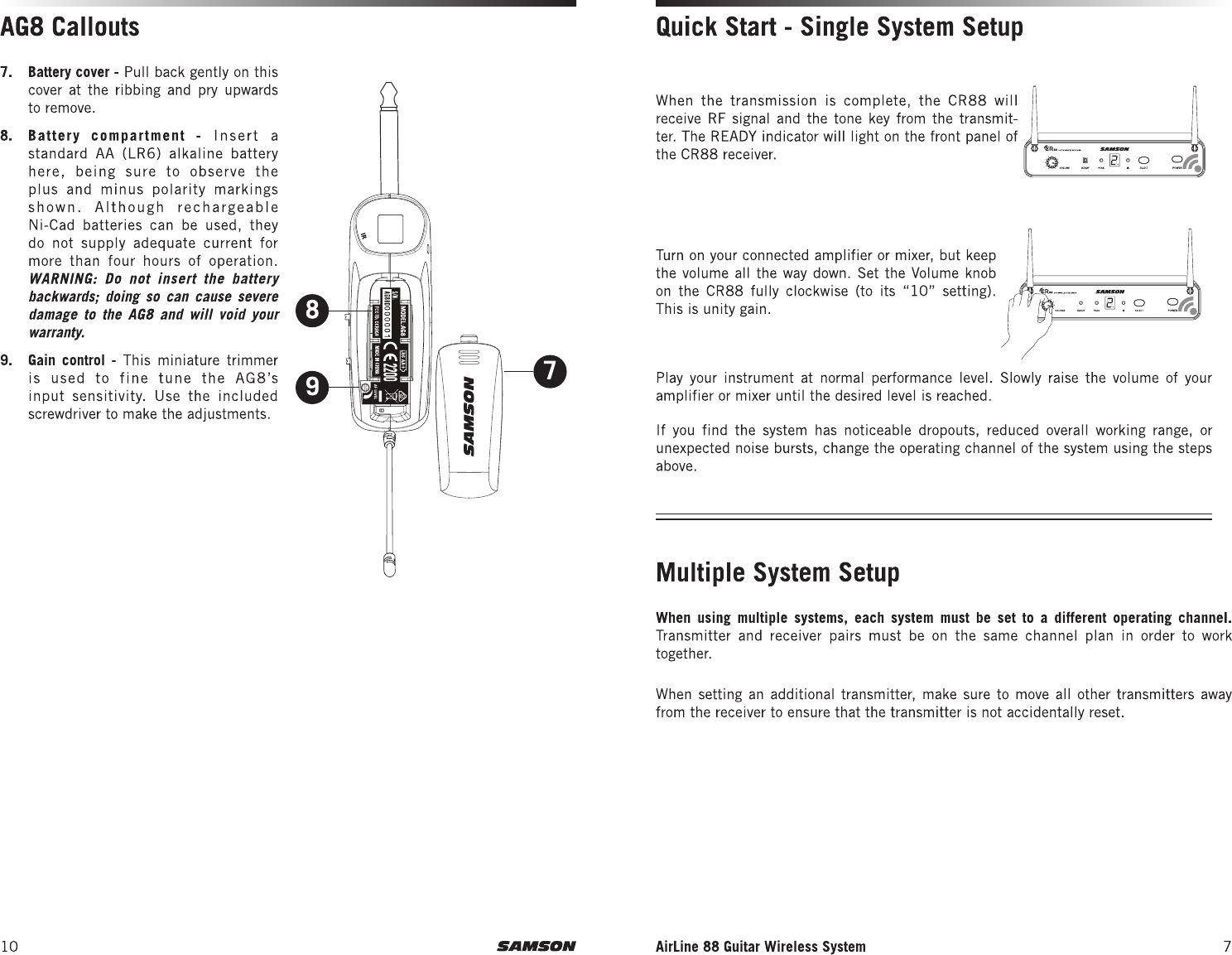 Sam Ash Music AG8 Wireless Microphone UHF Transmitter User Manual