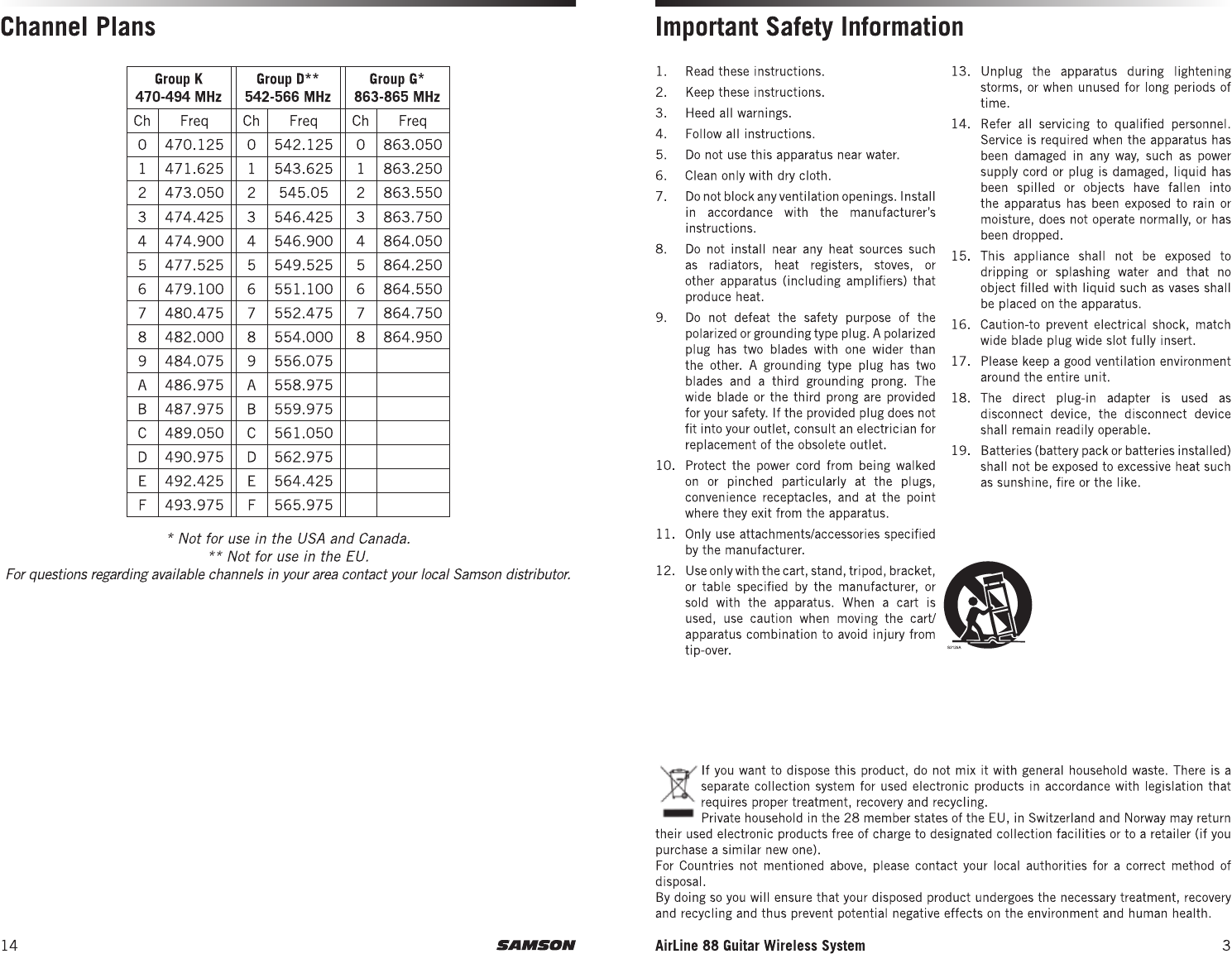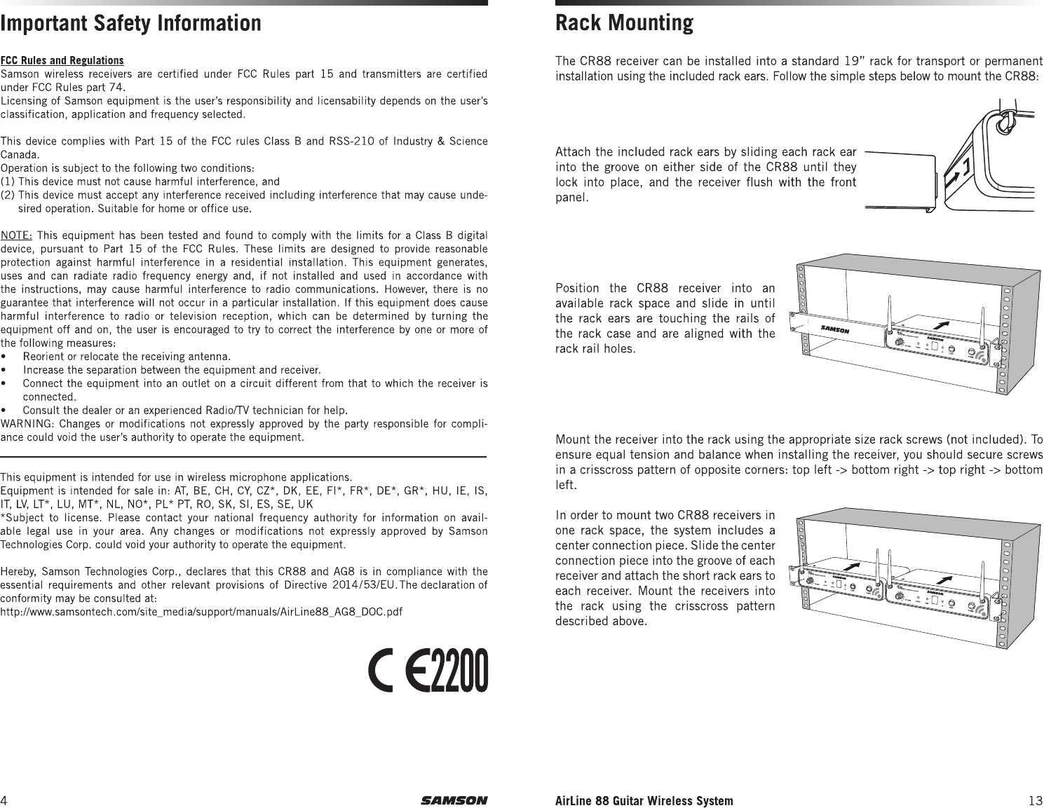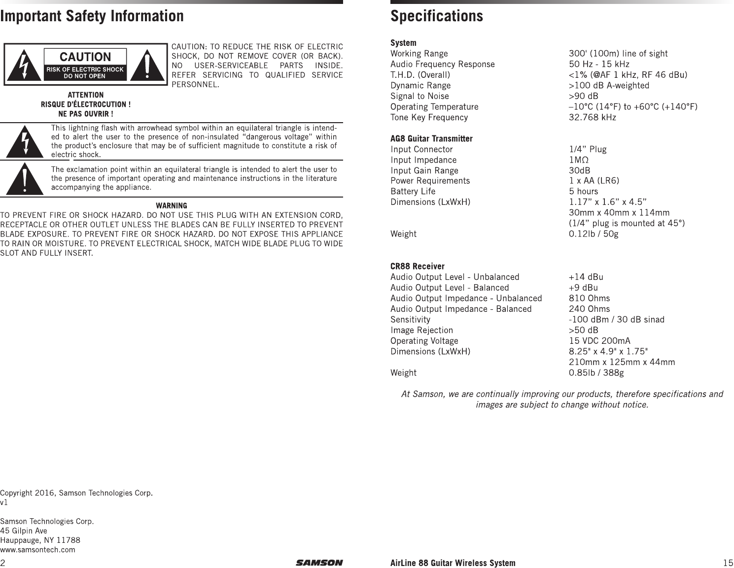 Sam Ash Music AG8 Wireless Microphone UHF Transmitter User Manual