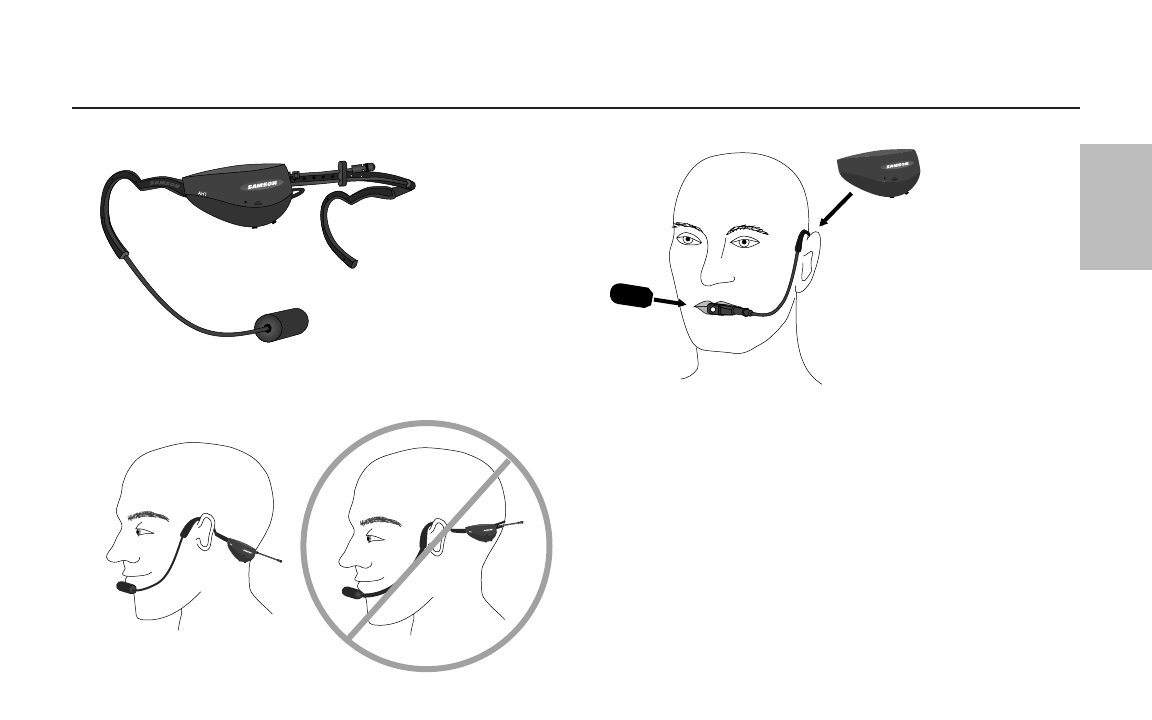 QV headset microphone, while the AirLine UHF Fitness System combines the AH1 with a Samson QE headset microphone. Finally,