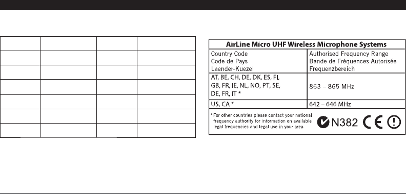 Airline Micro N-Channel wireless frequencies are within UHF TV frequency bands. Only certain channels may be available in particular