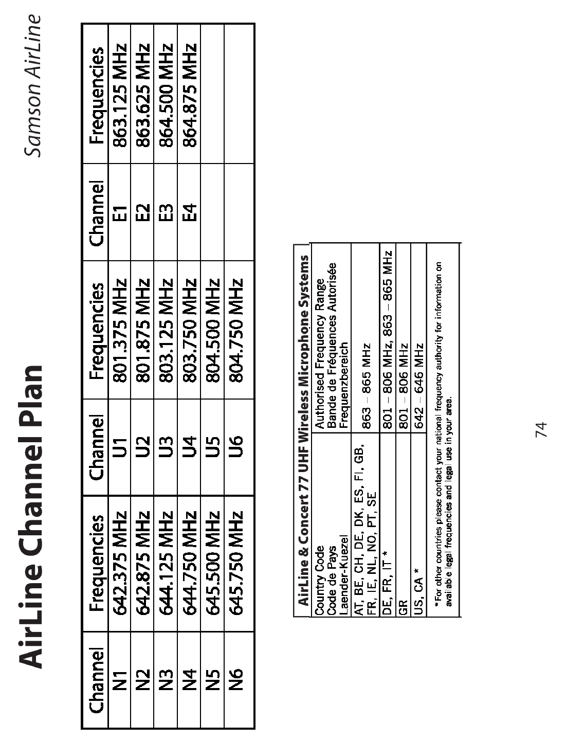 Receiving Frequencies USA 801-805MHz (U1-U6),