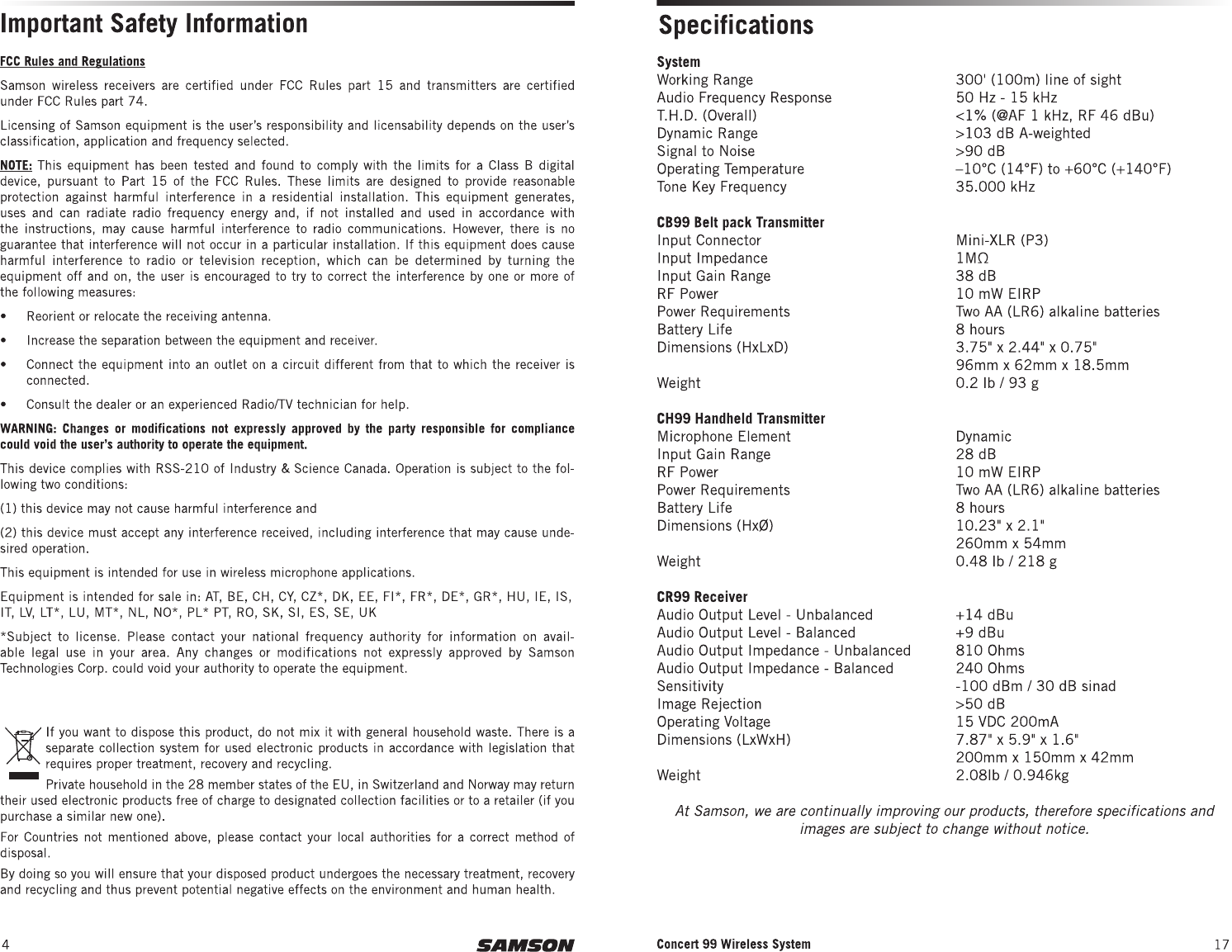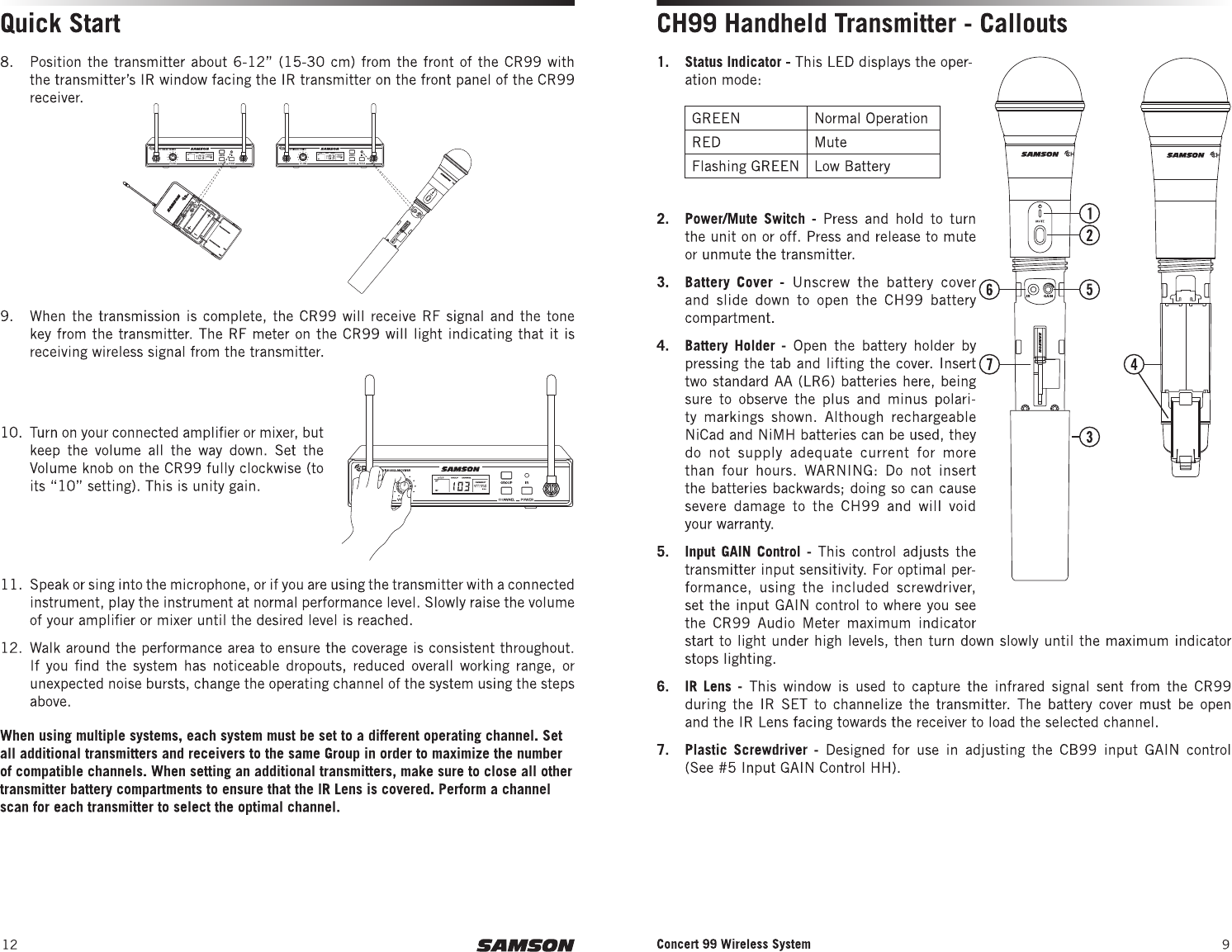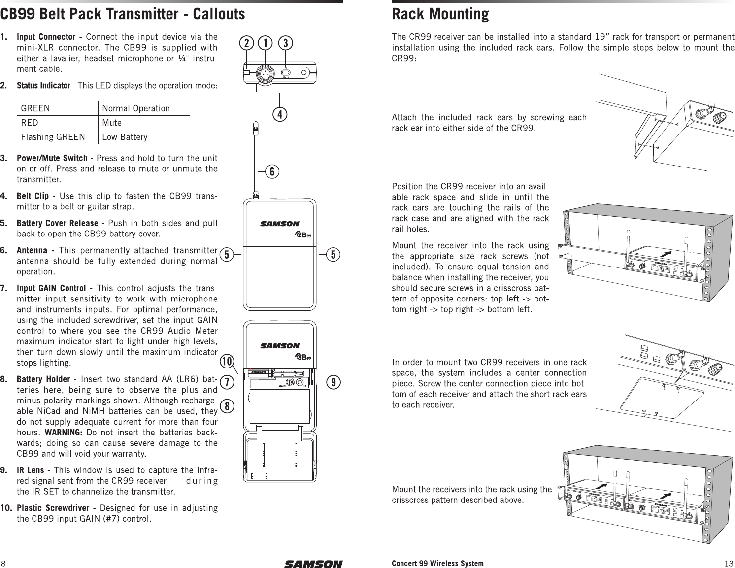 Sam Ash Music CB99 UHF Wireless System User Manual