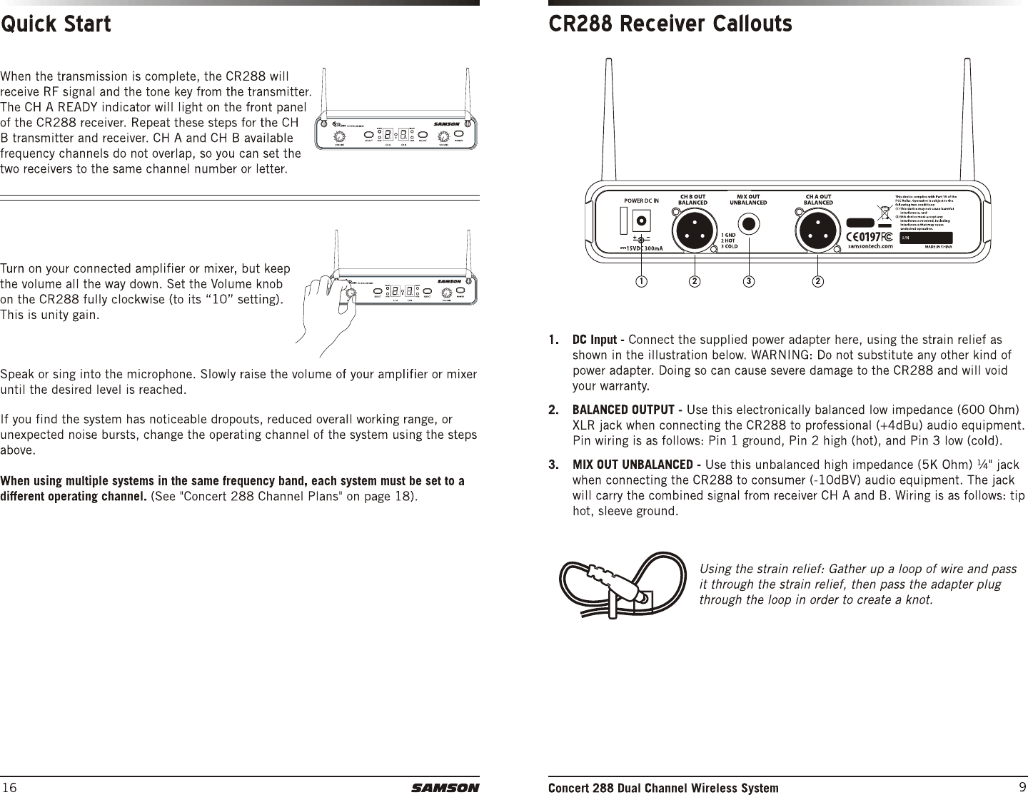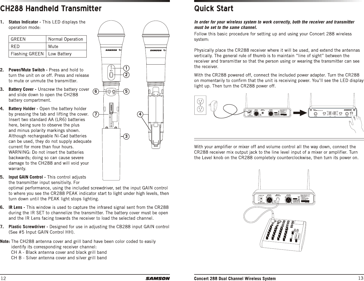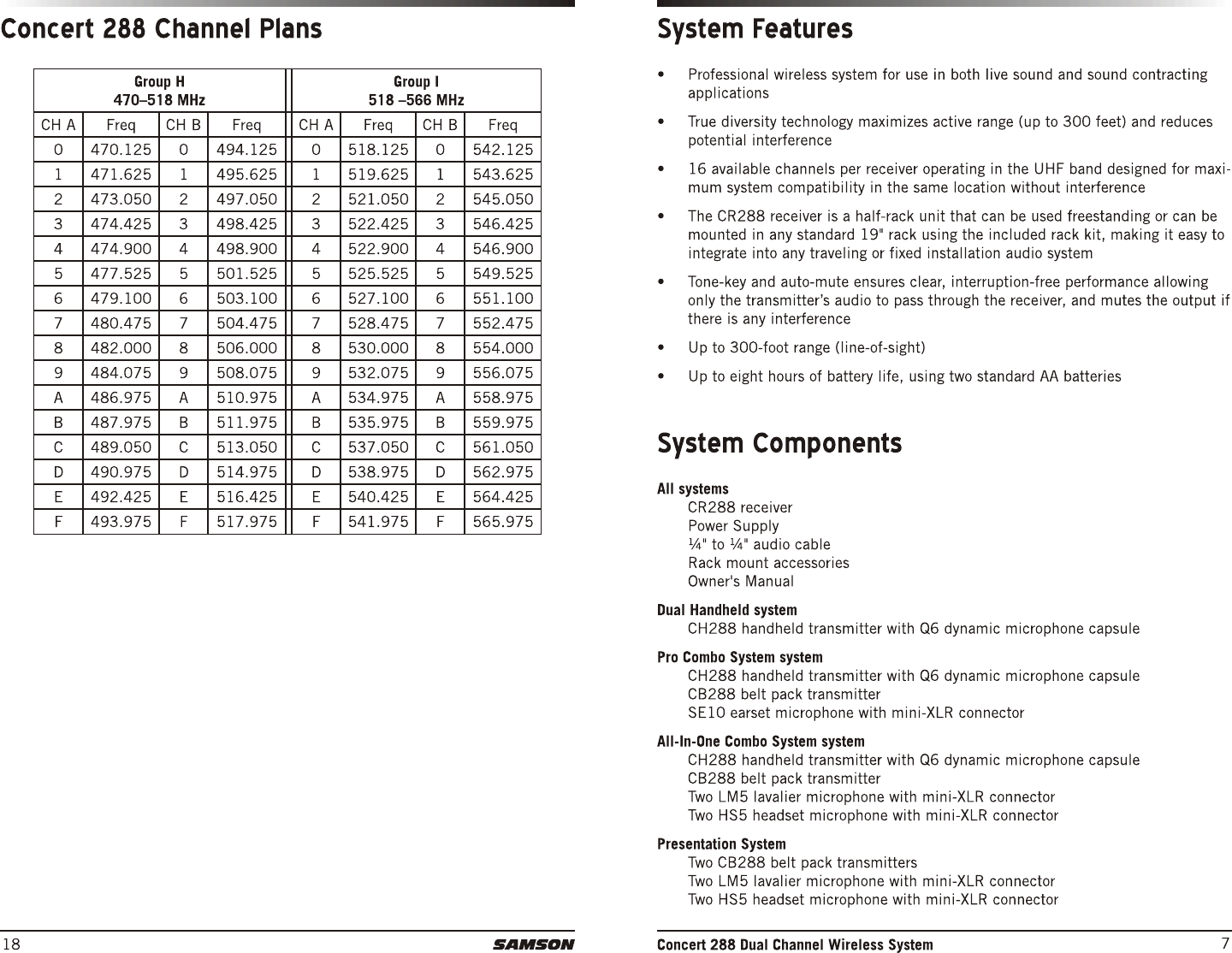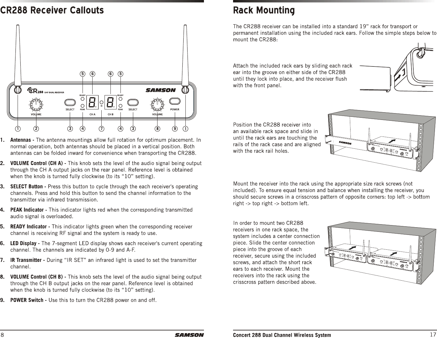 Sam Ash Music CH288 Dual-Channel Wireless System User Manual