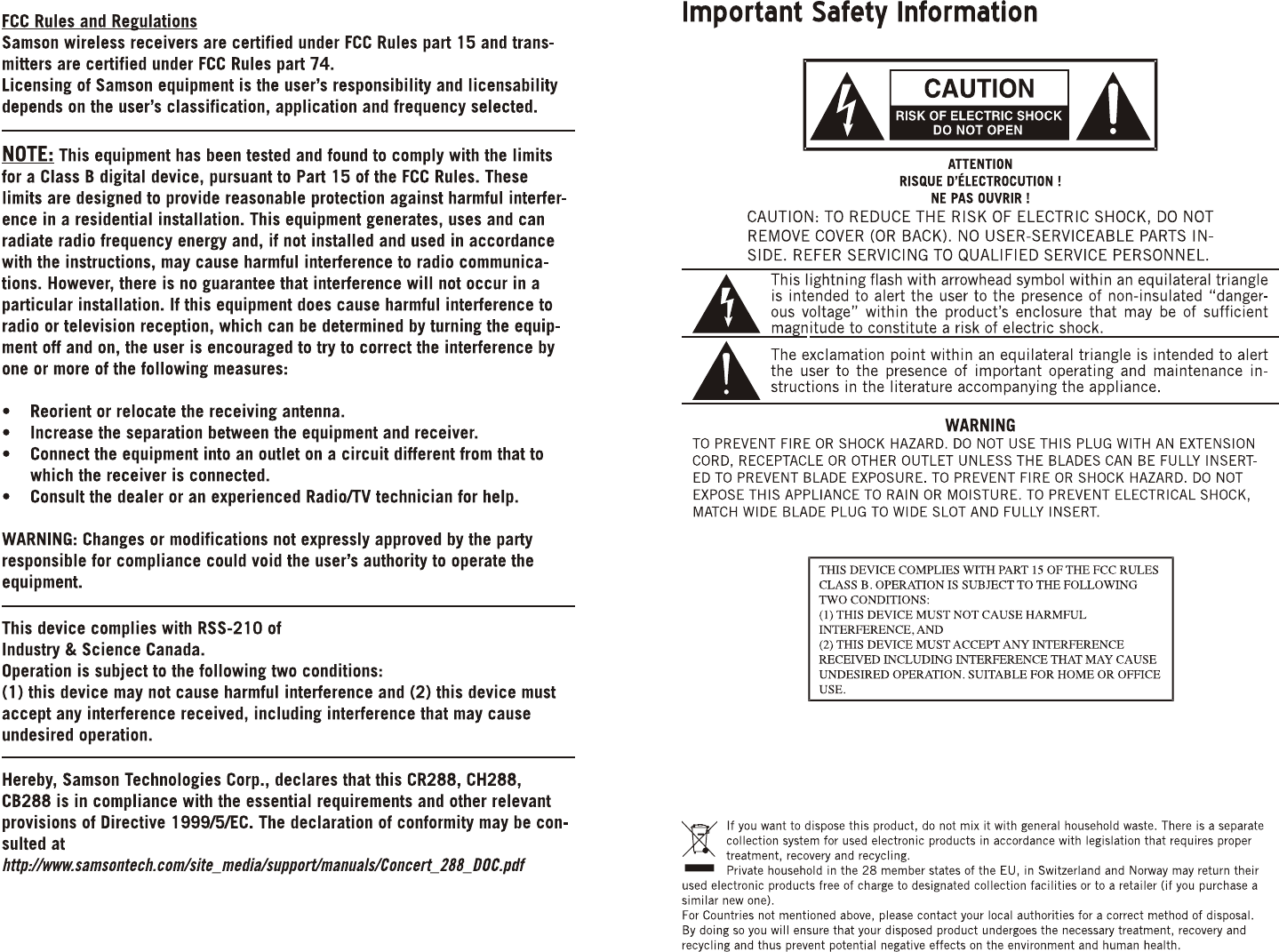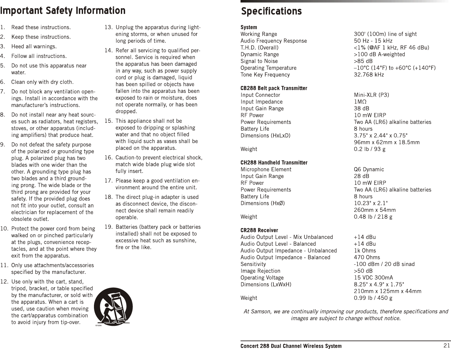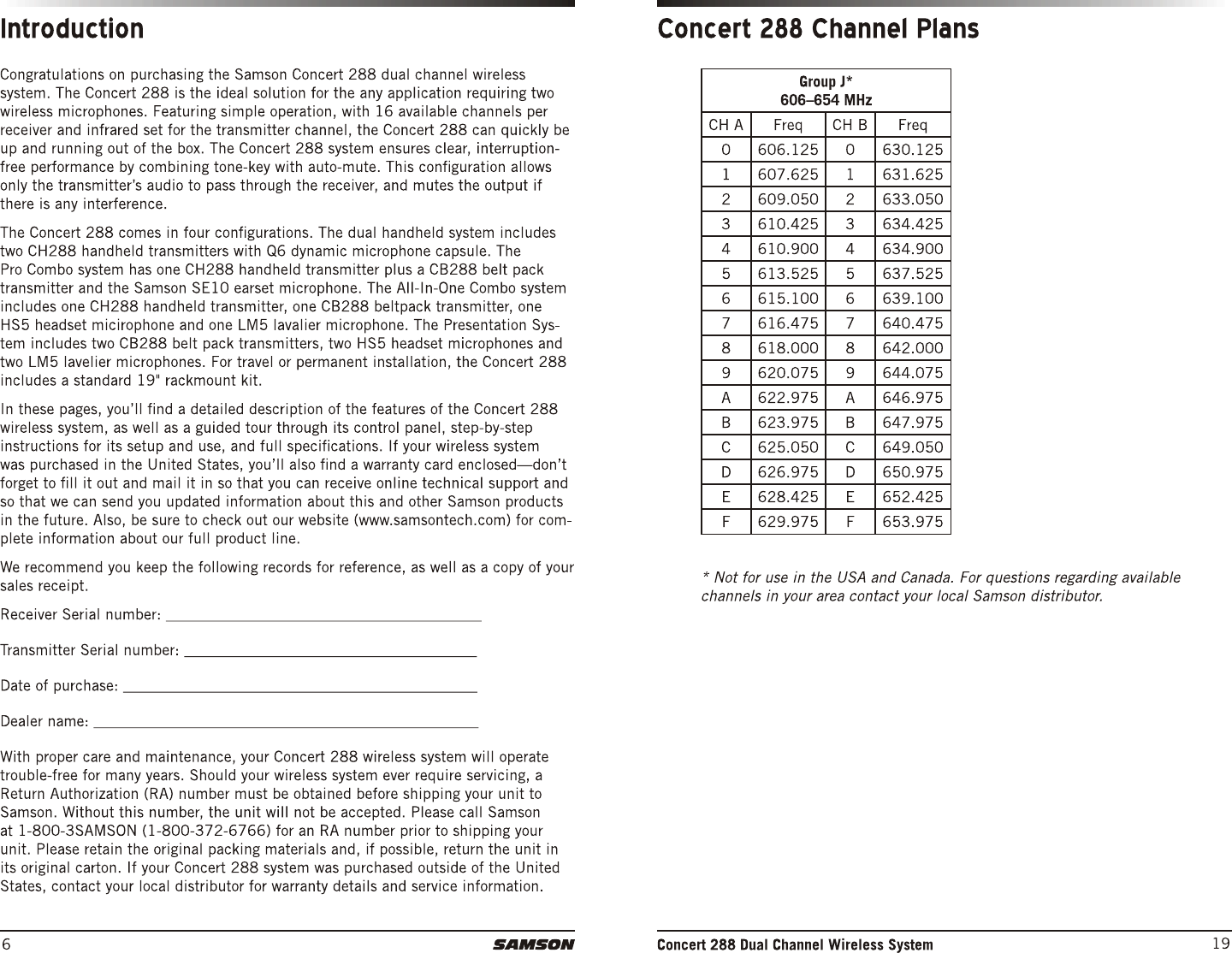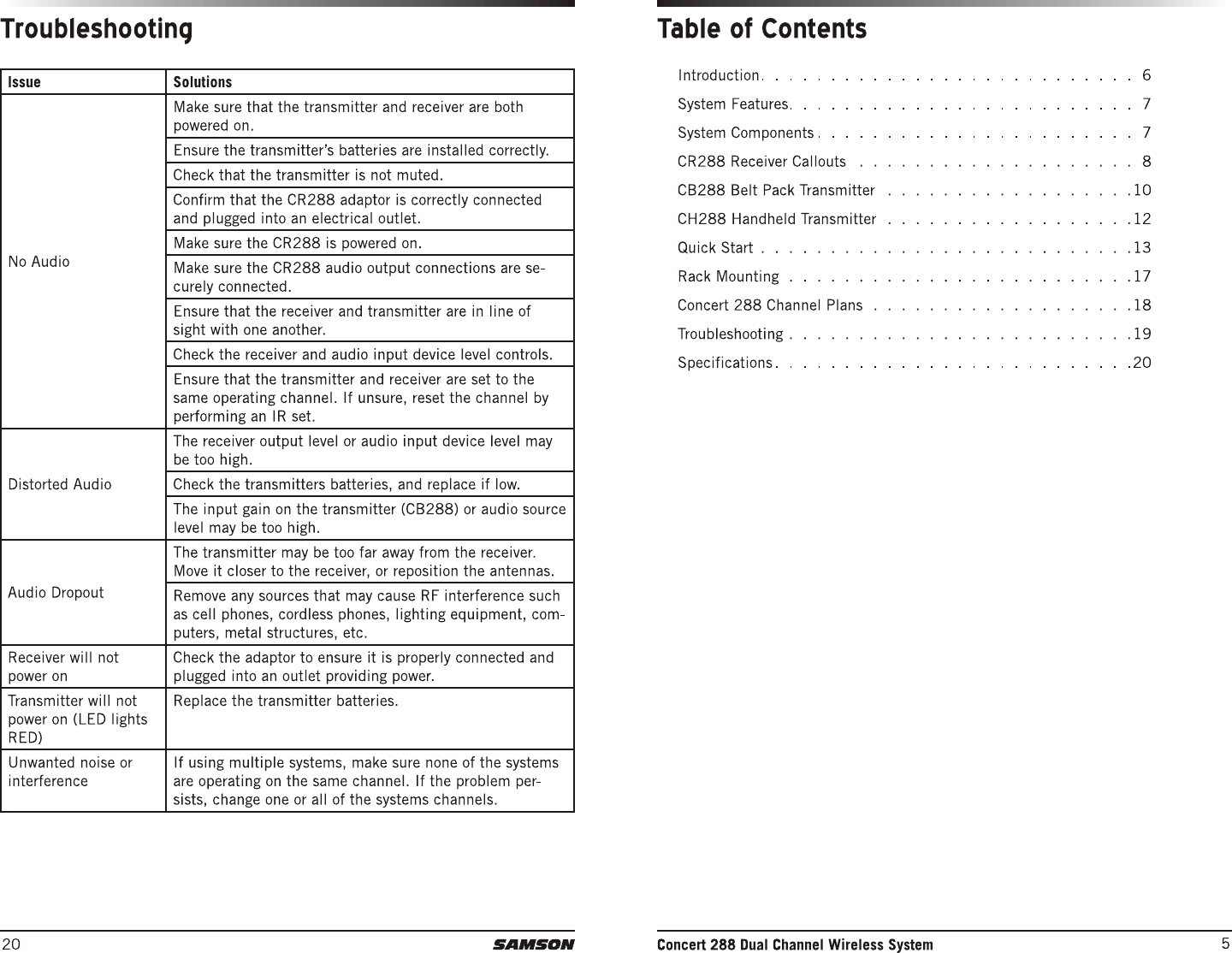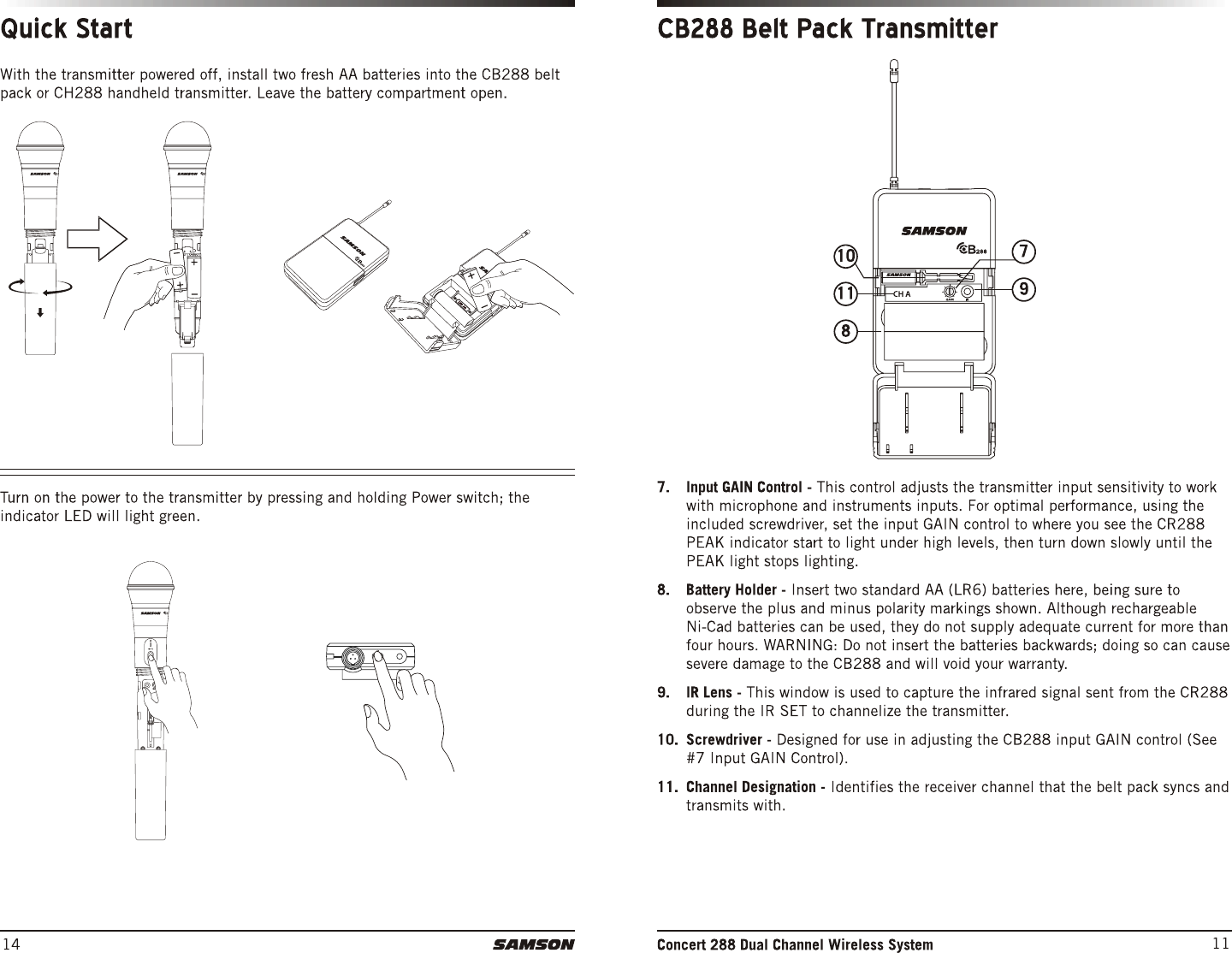 Sam Ash Music CH288 Dual-Channel Wireless System User Manual