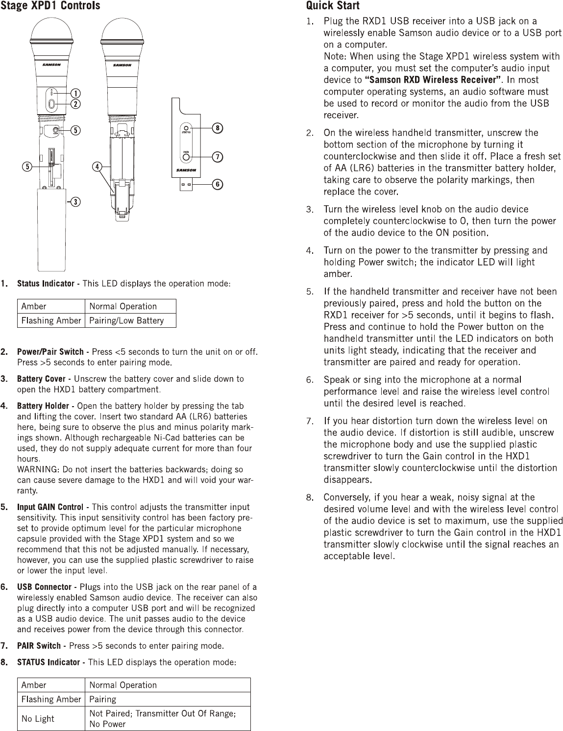 Sam Ash Music HXD1 USB Digital Wireless System User Manual STAGE XPD1