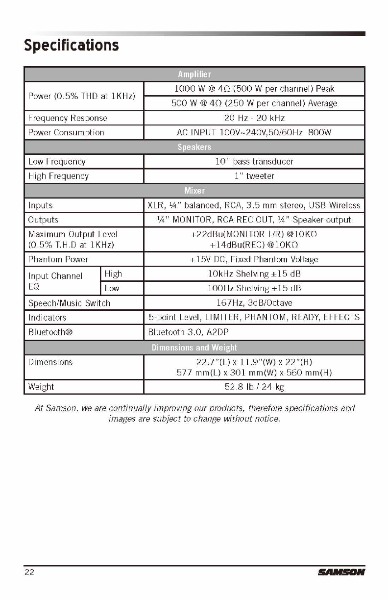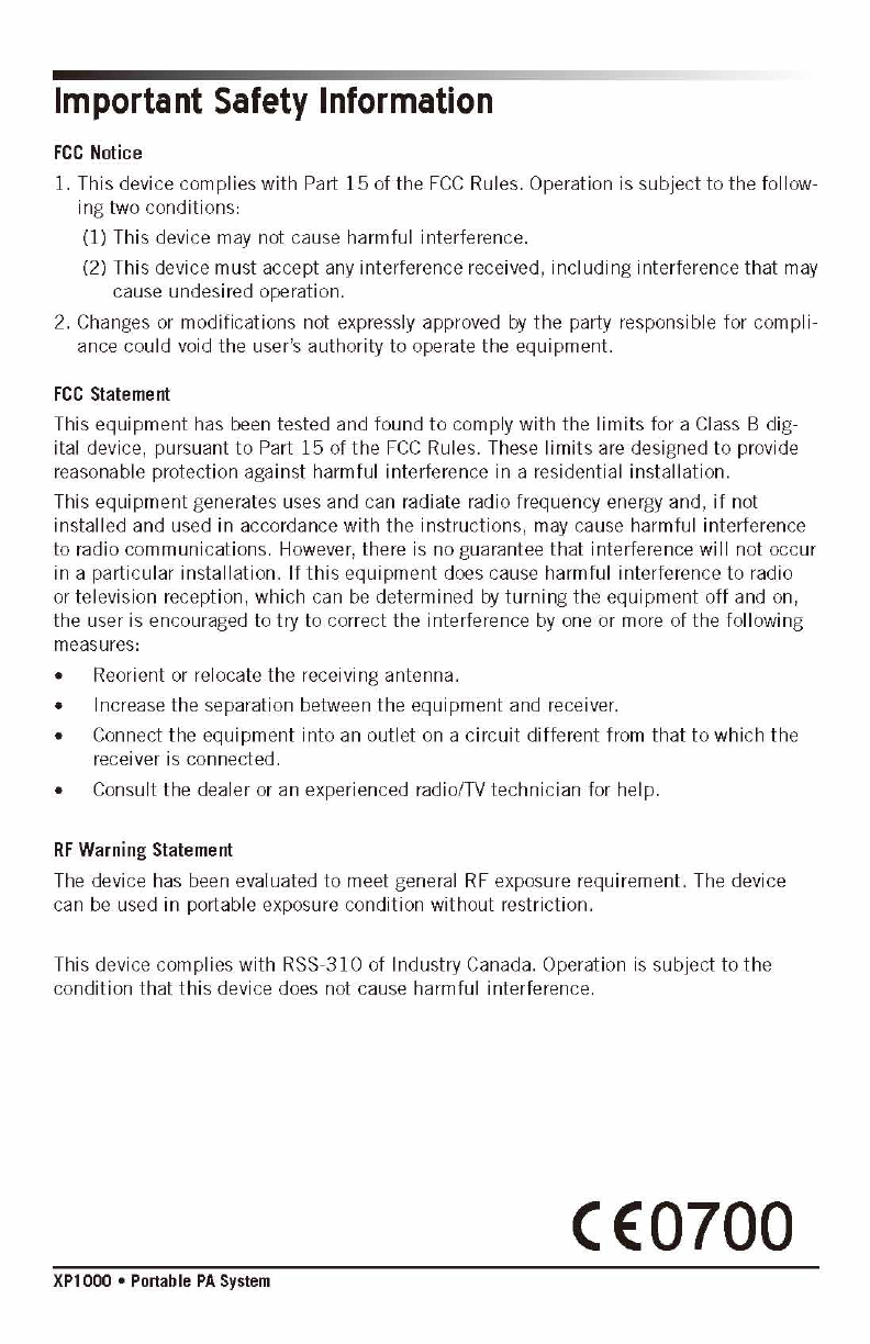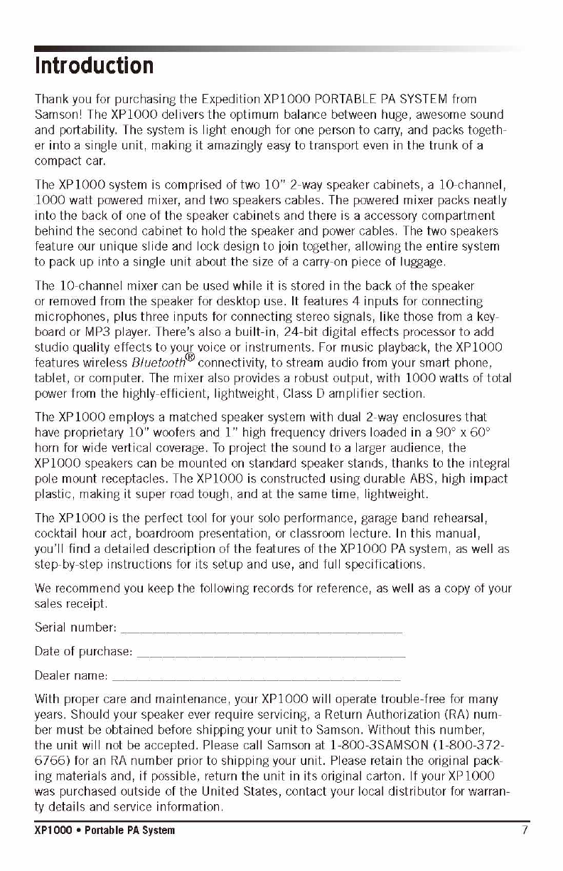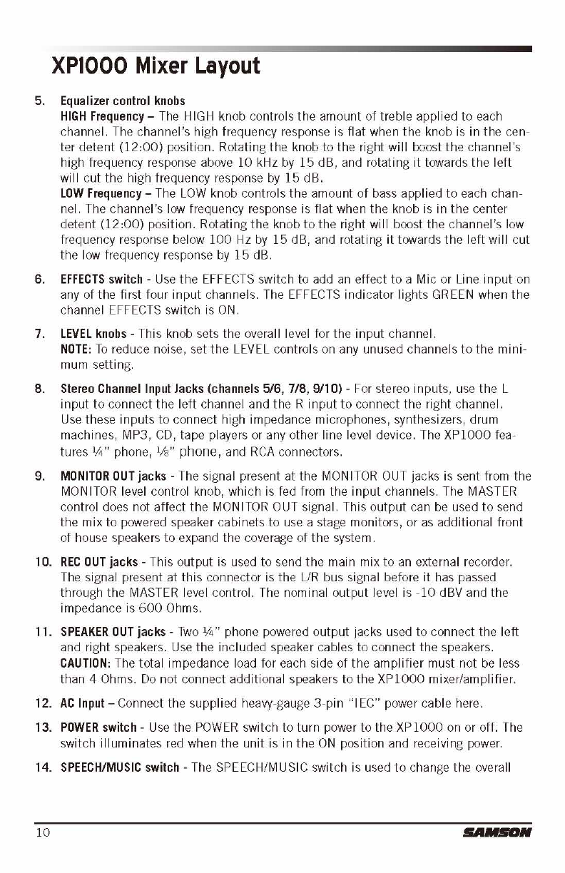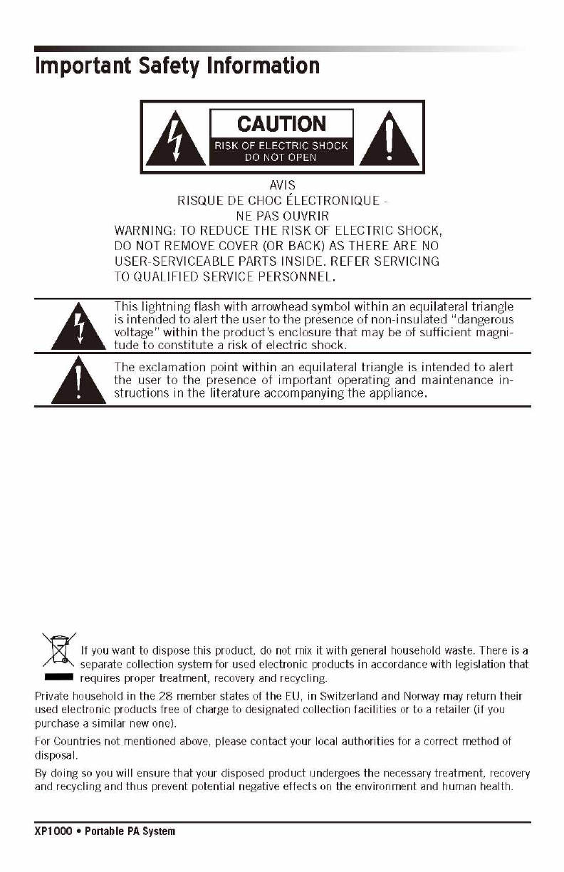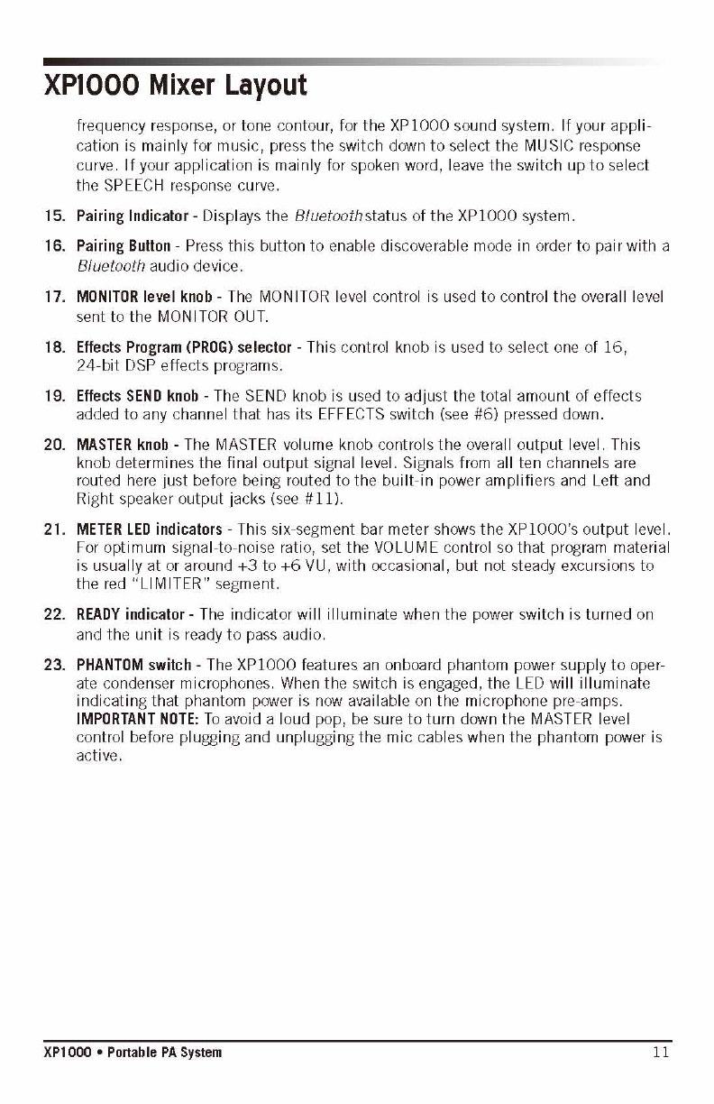 Sam Ash Music XP1000 PORTABLE PA SYSTEM User Manual