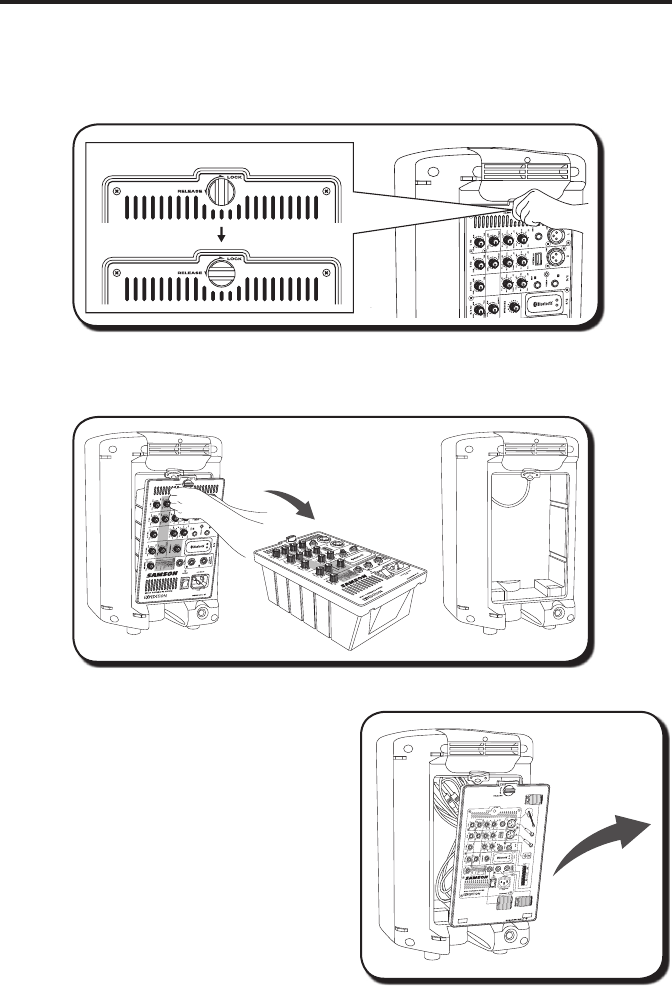remove the mixer from the rear of the speaker cabinet. When transporting the XP300,