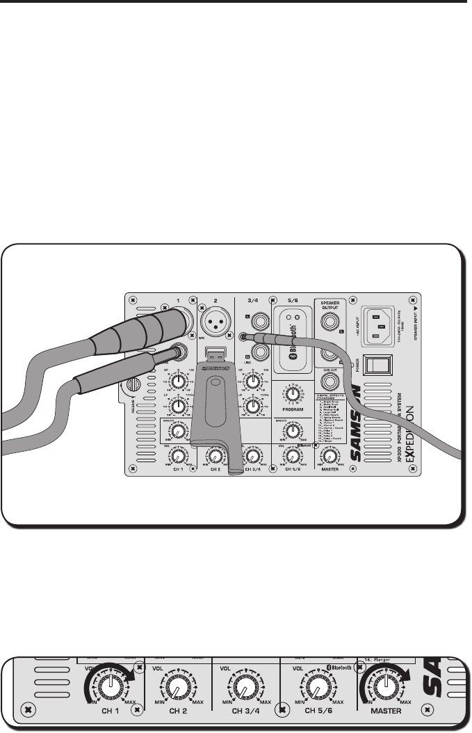 NOTE: To reduce noise, set the VOLUME controls on any unused channels to the minimum