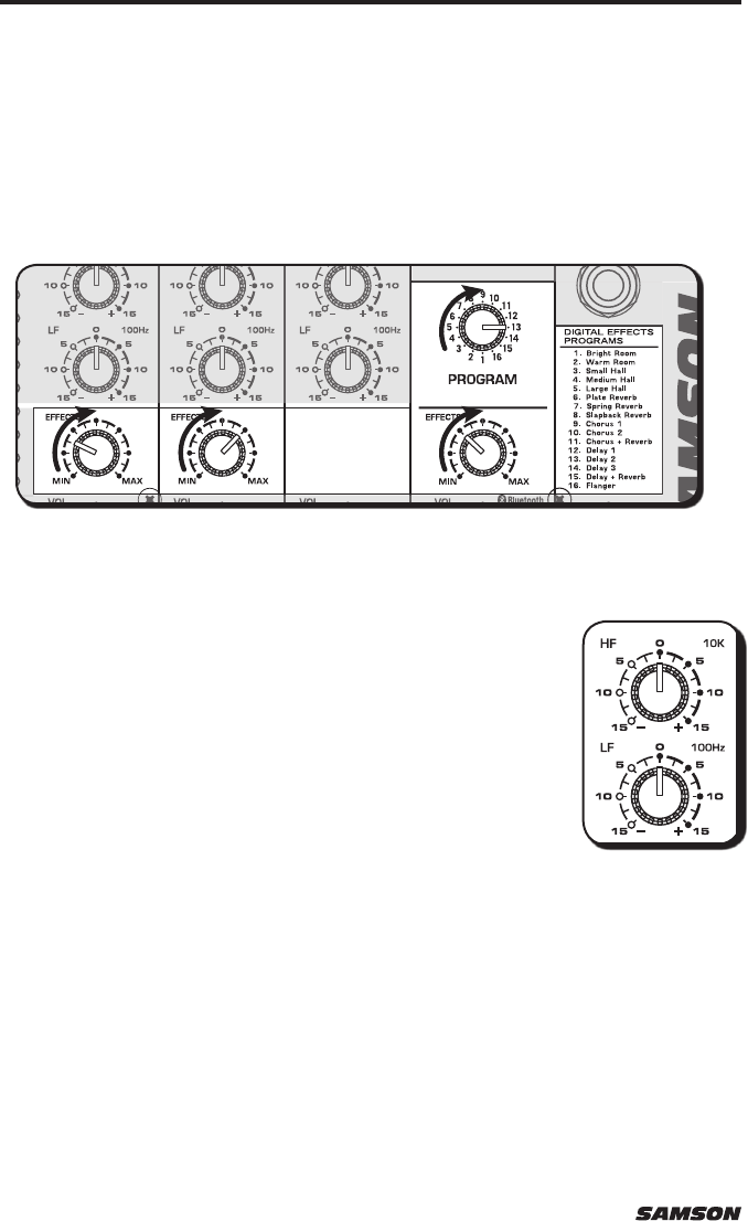 6. Low Frequency (LF) – The LF knob controls the amount of bass applied to each channel.