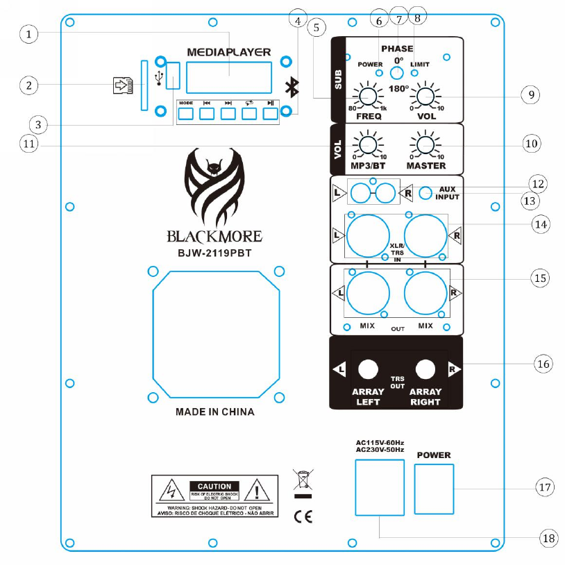 :Press Switch between USB/BLUETOOTH/LINE