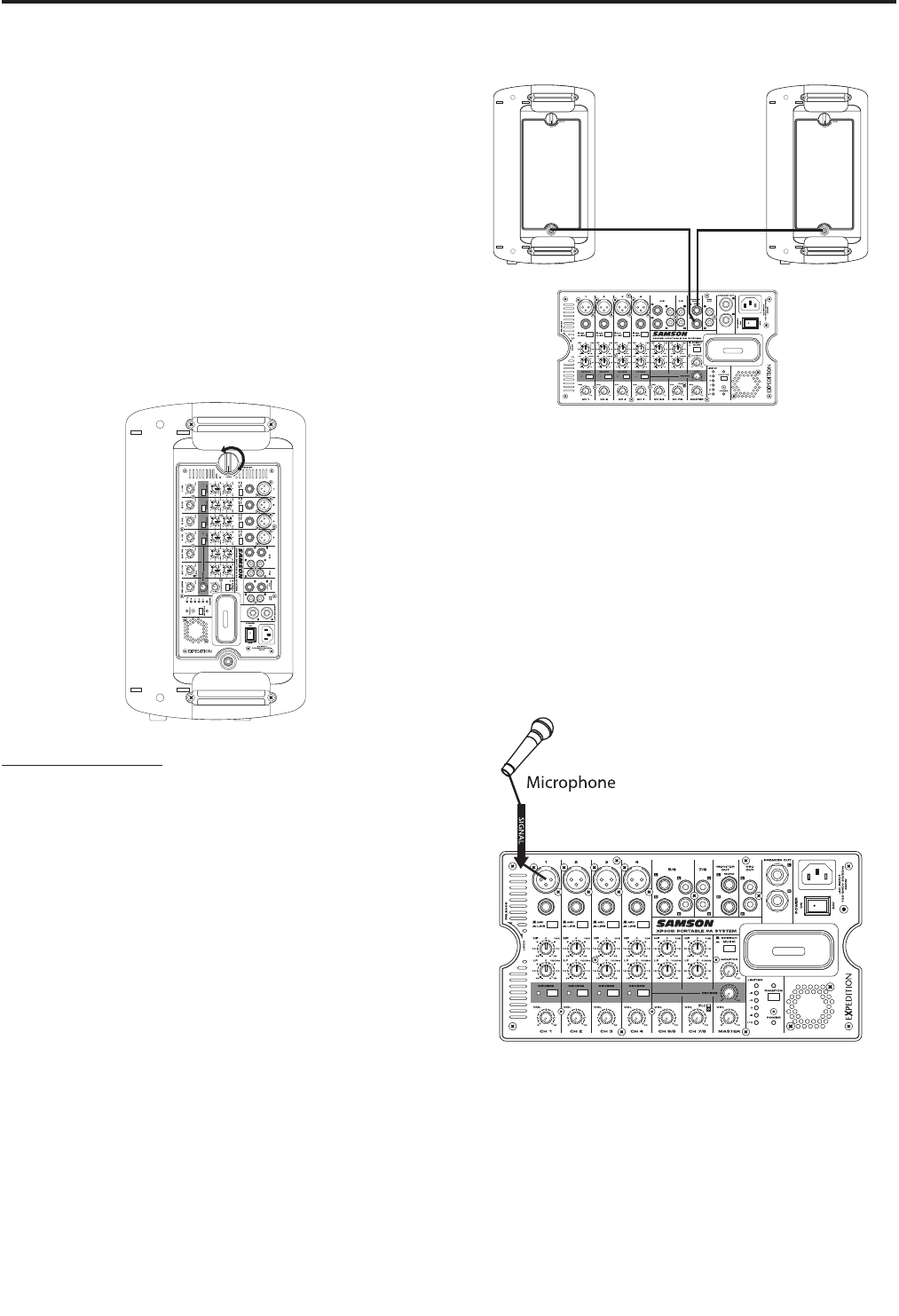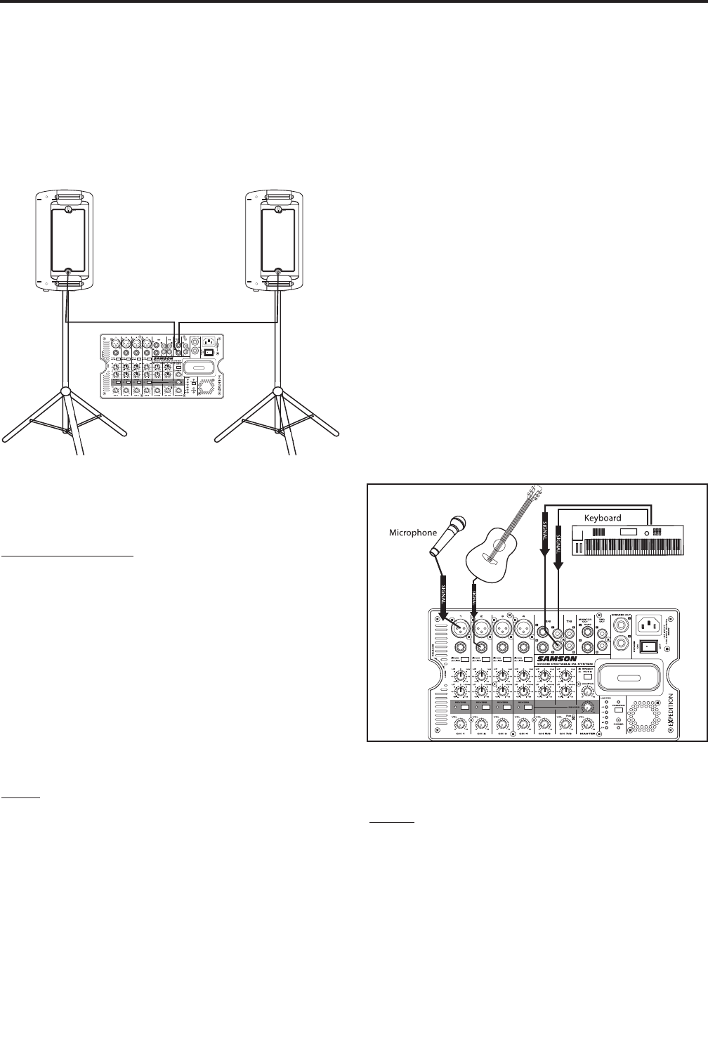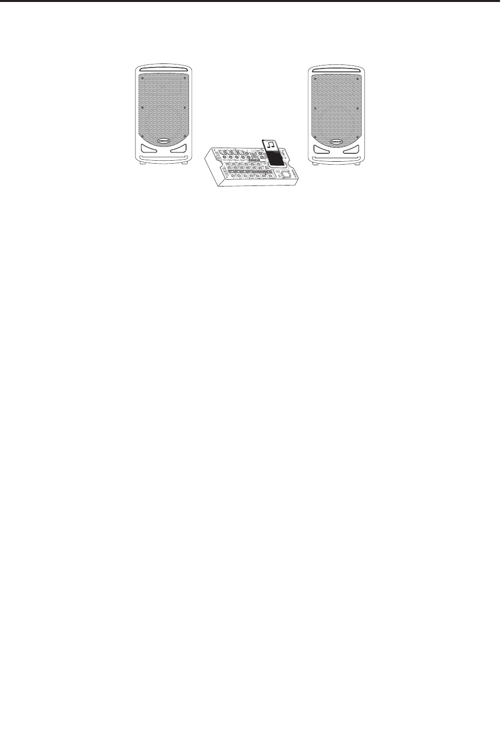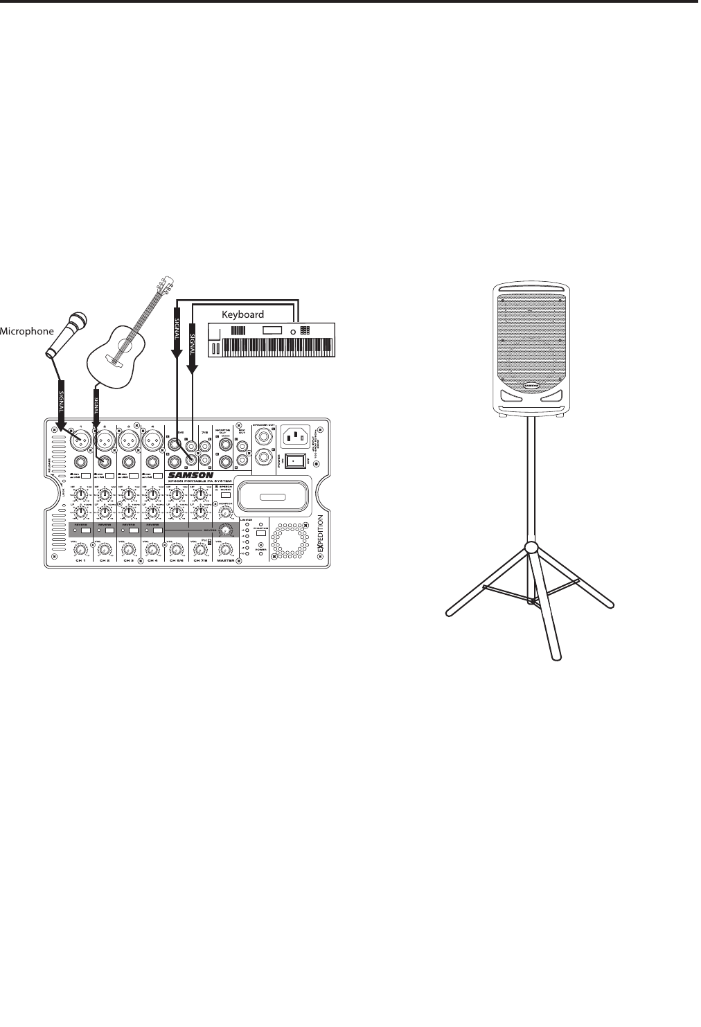 separate signal from the XP308i mixer’s MONITOR OUT is sent to two Samson LIVE 612M powered floor monitors.