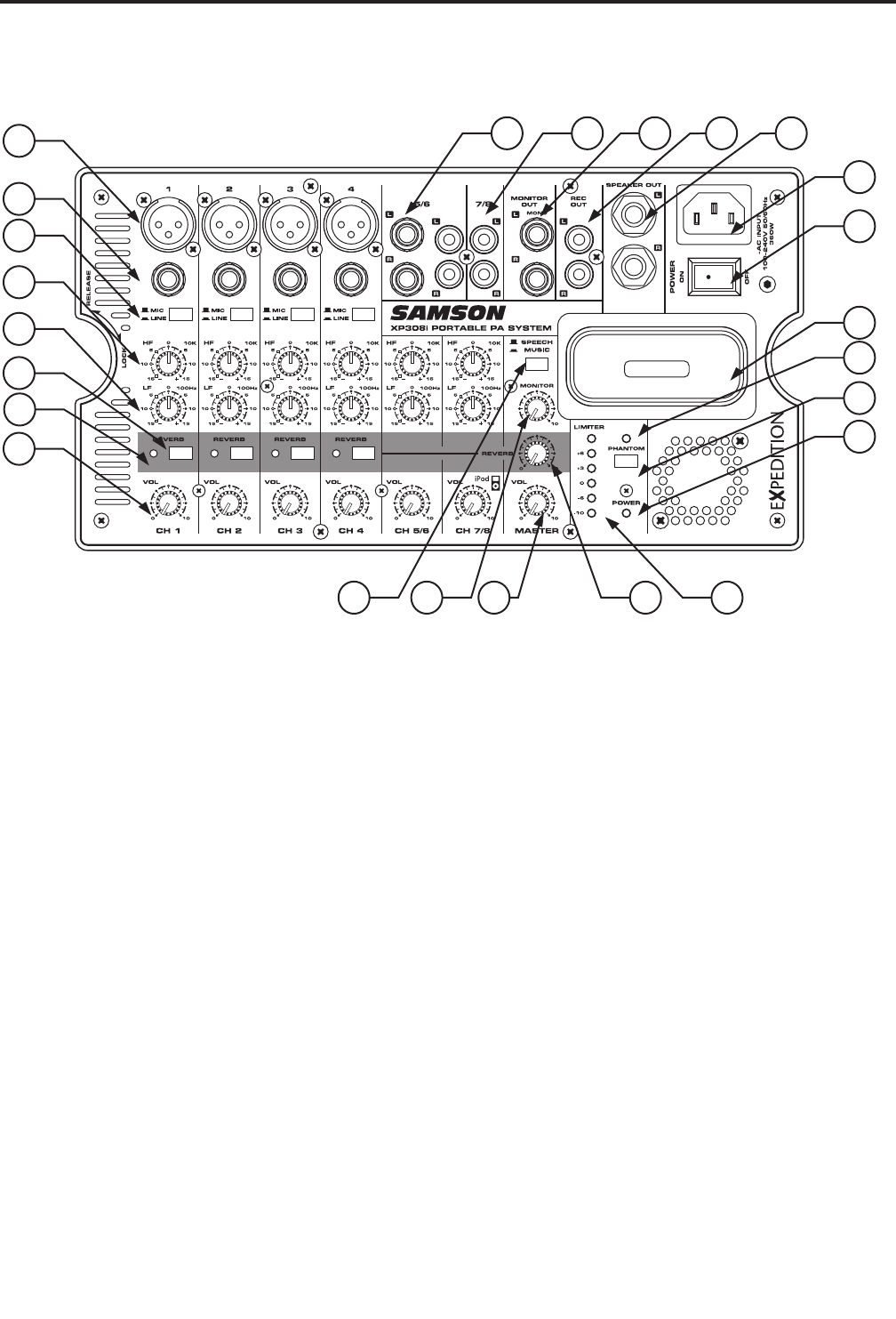 REVERB:An indicator for mic each channel Reverb turns on when the reverb sw is
