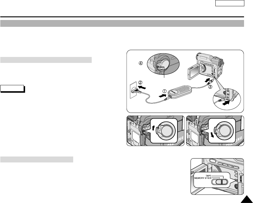 1. Set the camcorder to CAMERA or PLAYER mode.