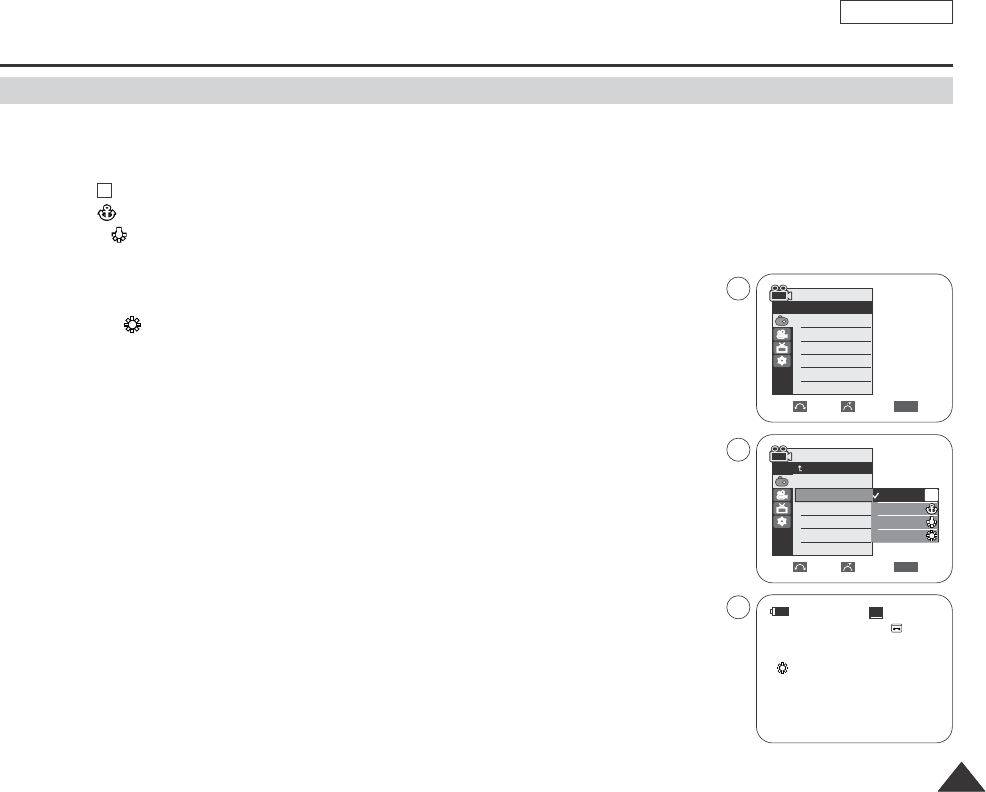 ✤Quick menu is used to access Camcorder functions by simply using the Menu selector.