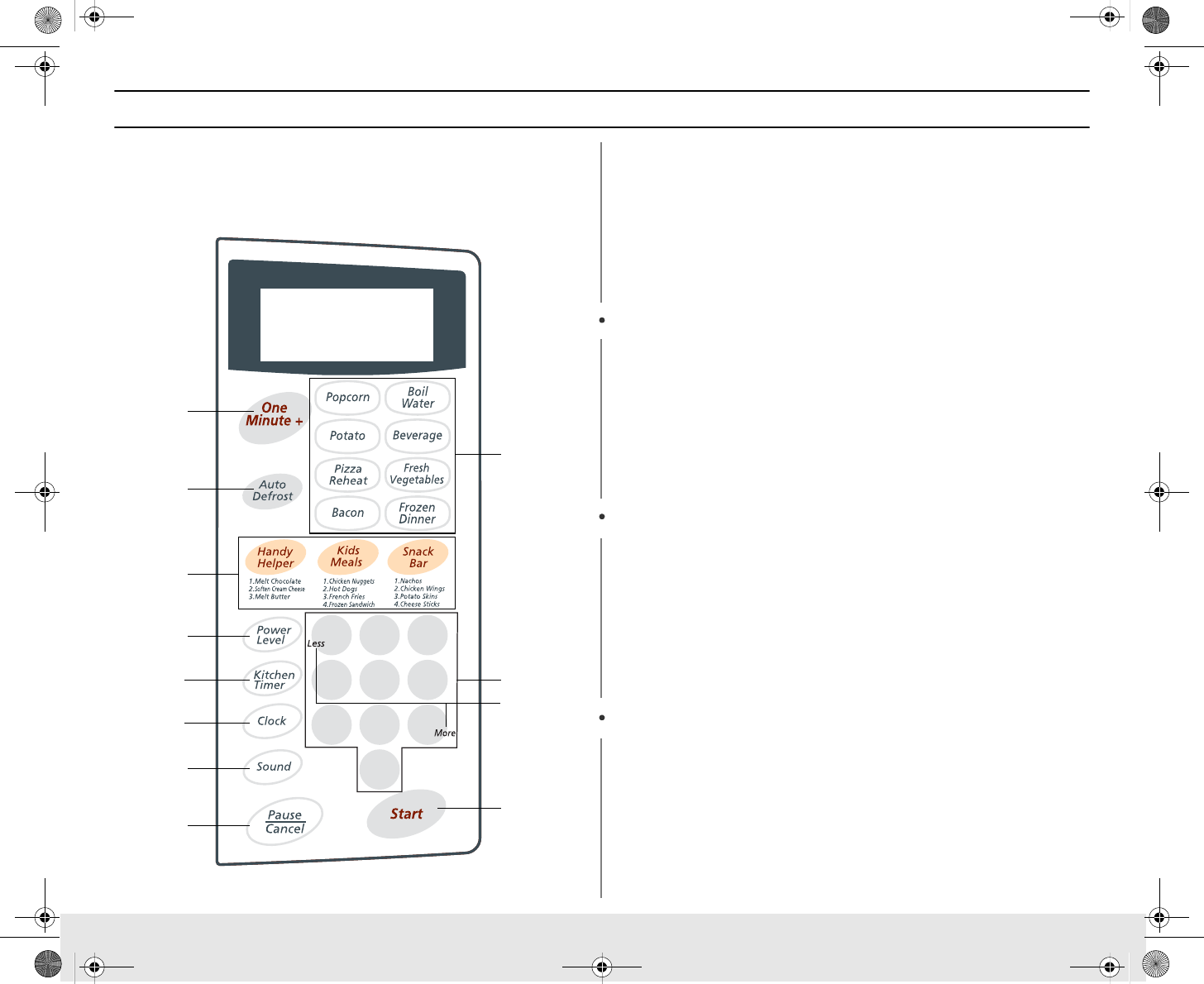Buttons 1. Press button that corresponds to the food