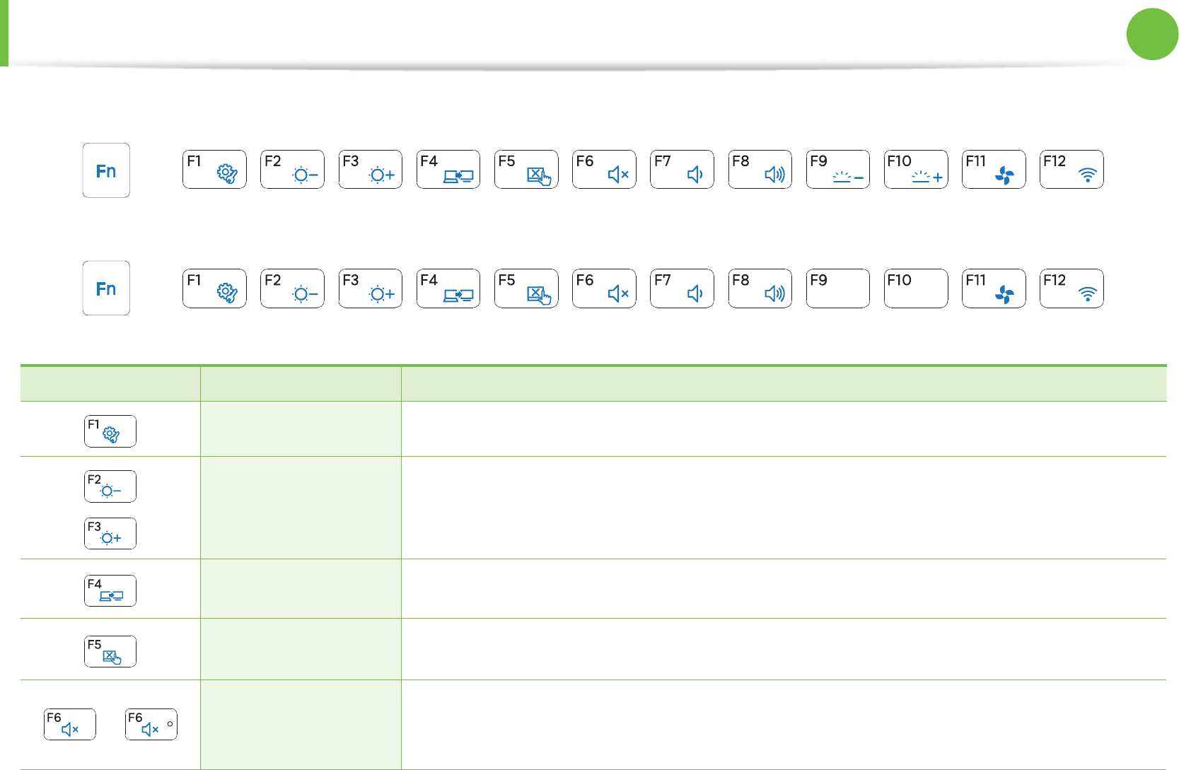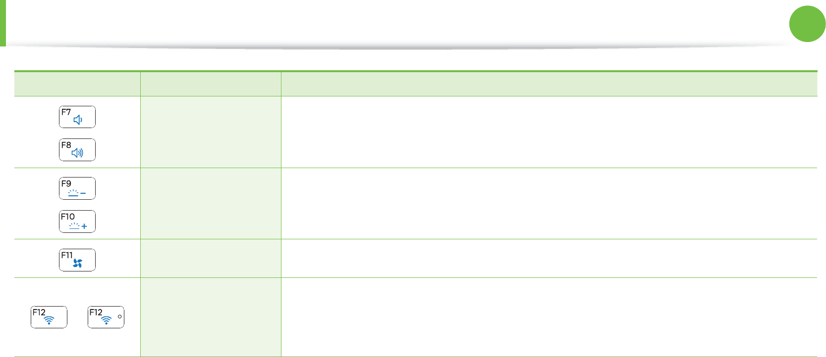 Pressing Fn + shortcut keys (F1~F12) simultaneously