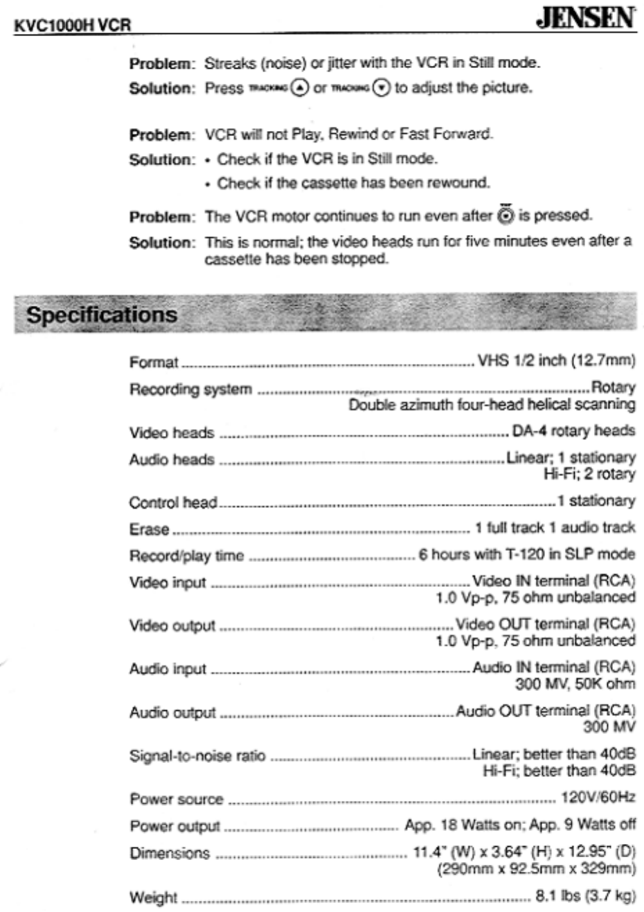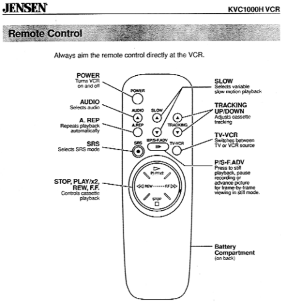 Samsung Electronics Co A19LMW Video Cassette Recoder User Manual manual