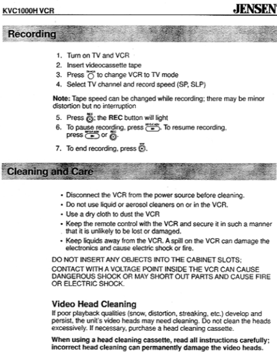Samsung Electronics Co Ltd Video Cassette Recoder manual