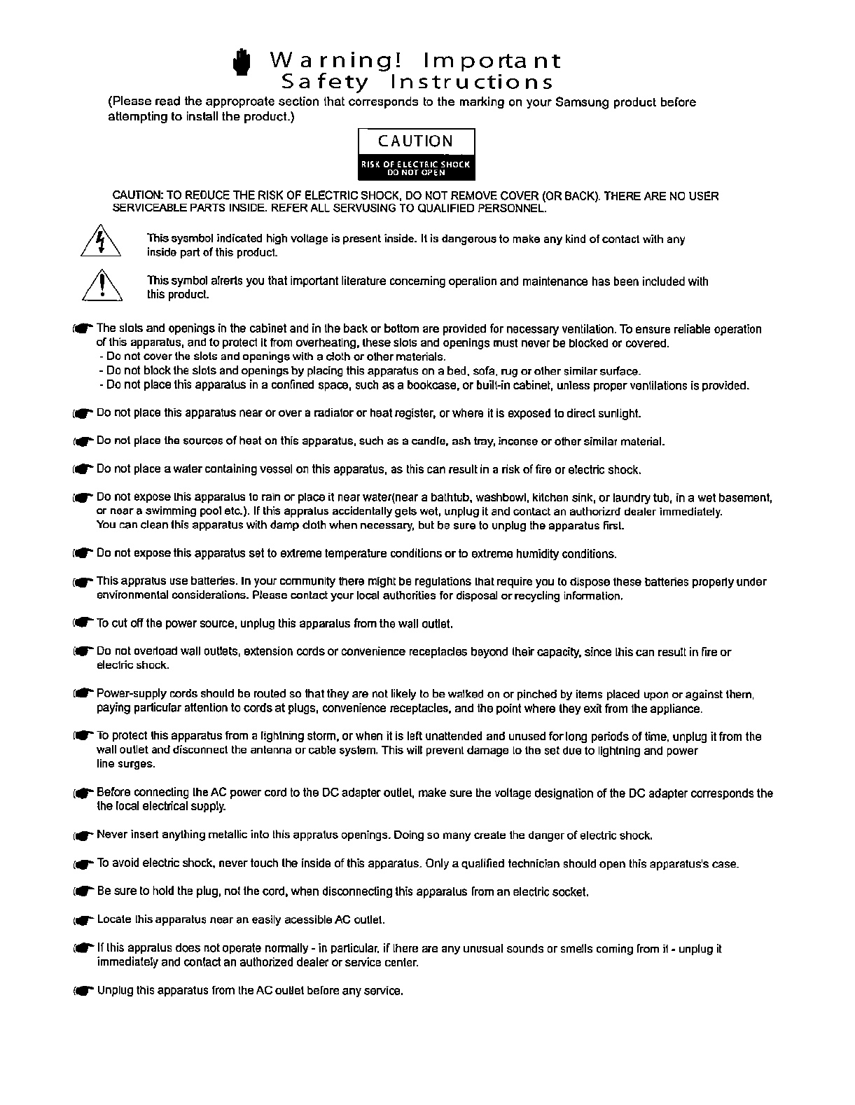 Samsung Electronics Co Ltd DLP Projection TV Users Manual