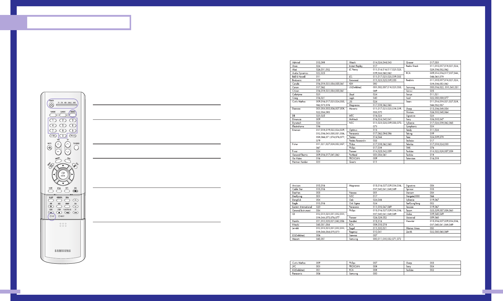 Samsung (even if your VCR, Cable box and DVD are made by manufacturers other than Samsung).