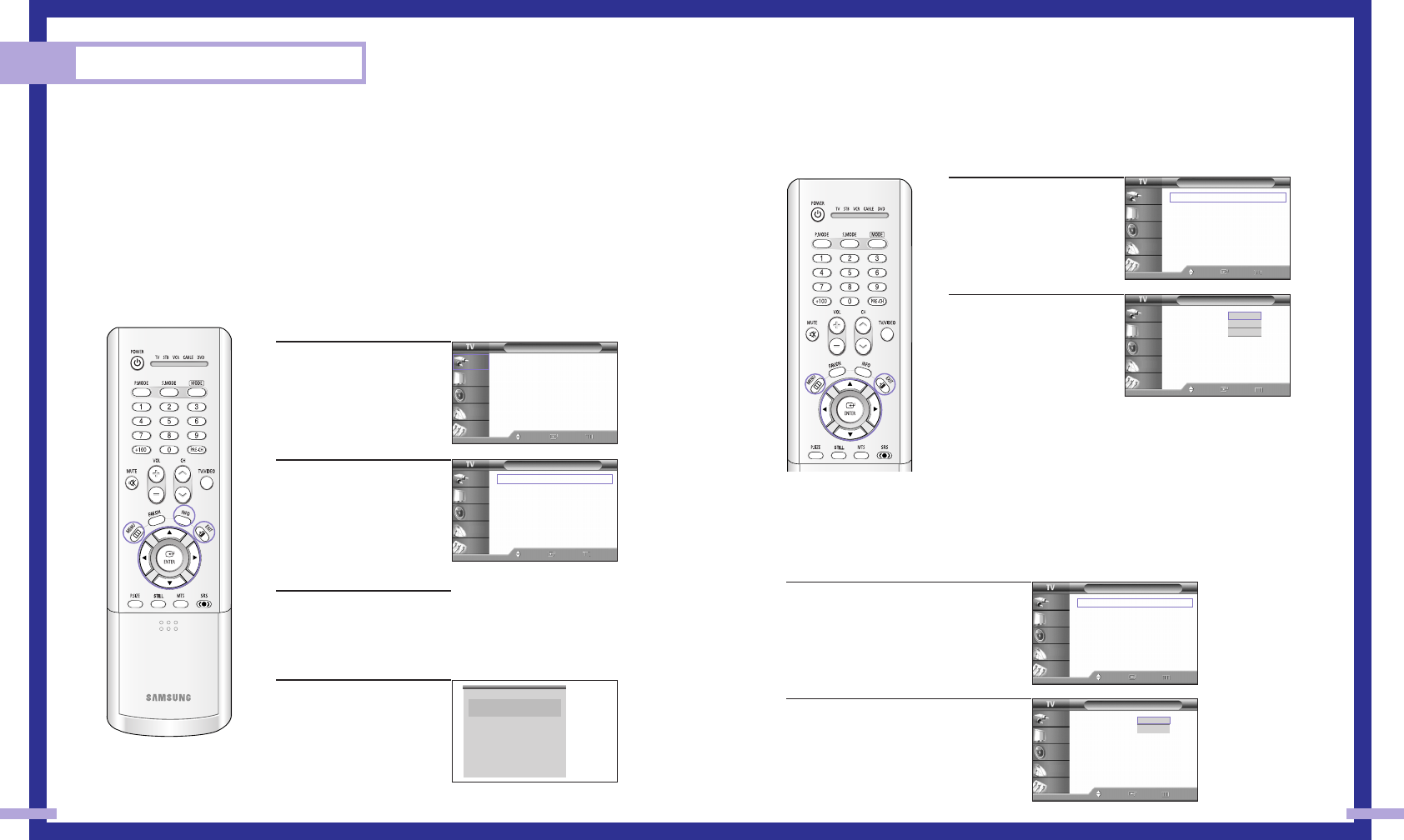 •With PIP On, the screen automatically becomes wide in the Antenna, AV (1~3), S-Video (1~3)