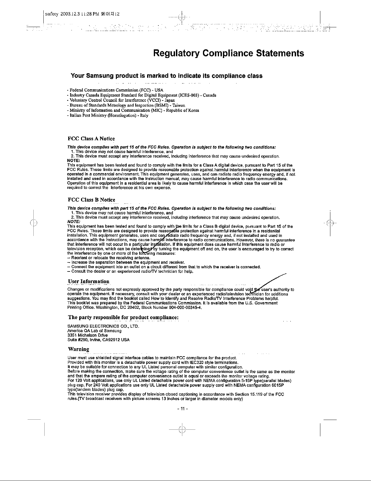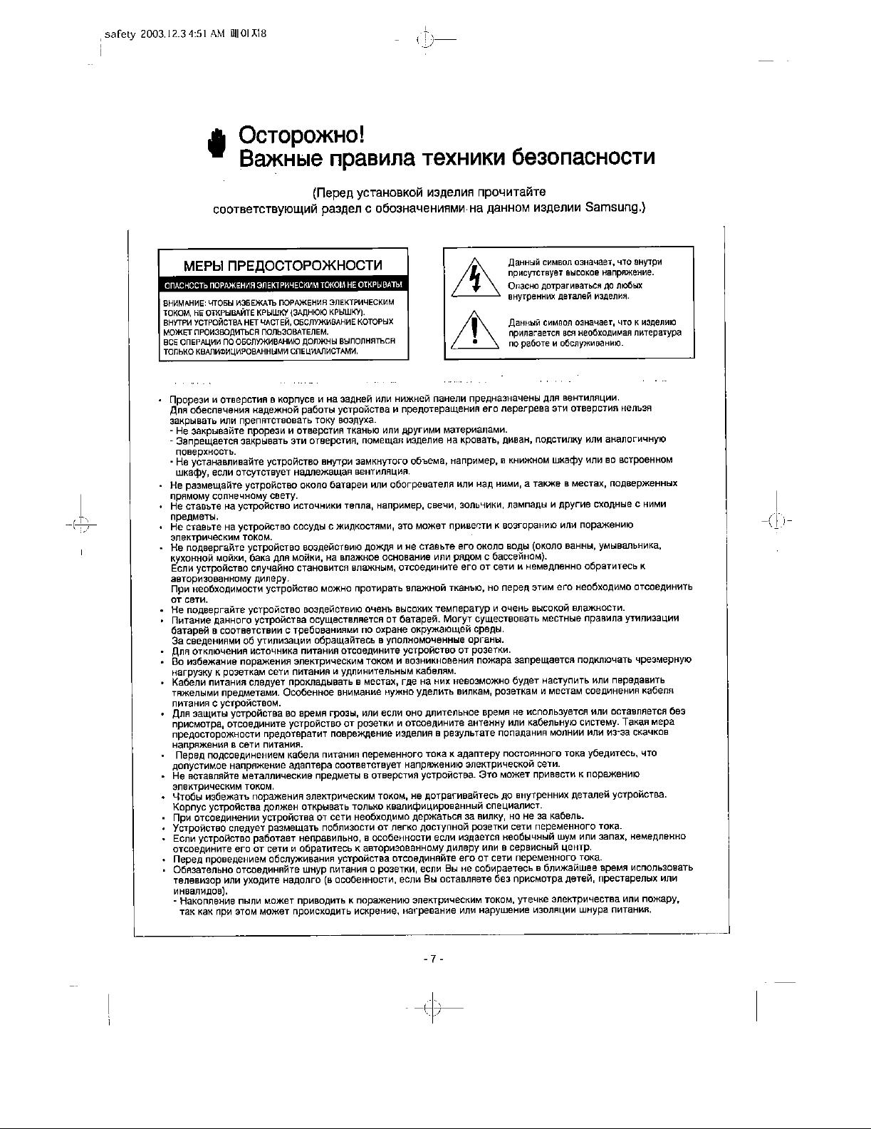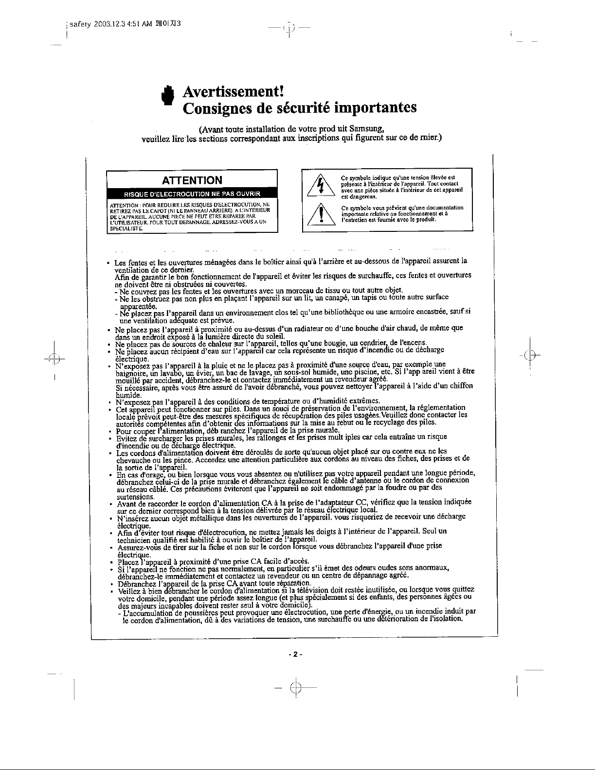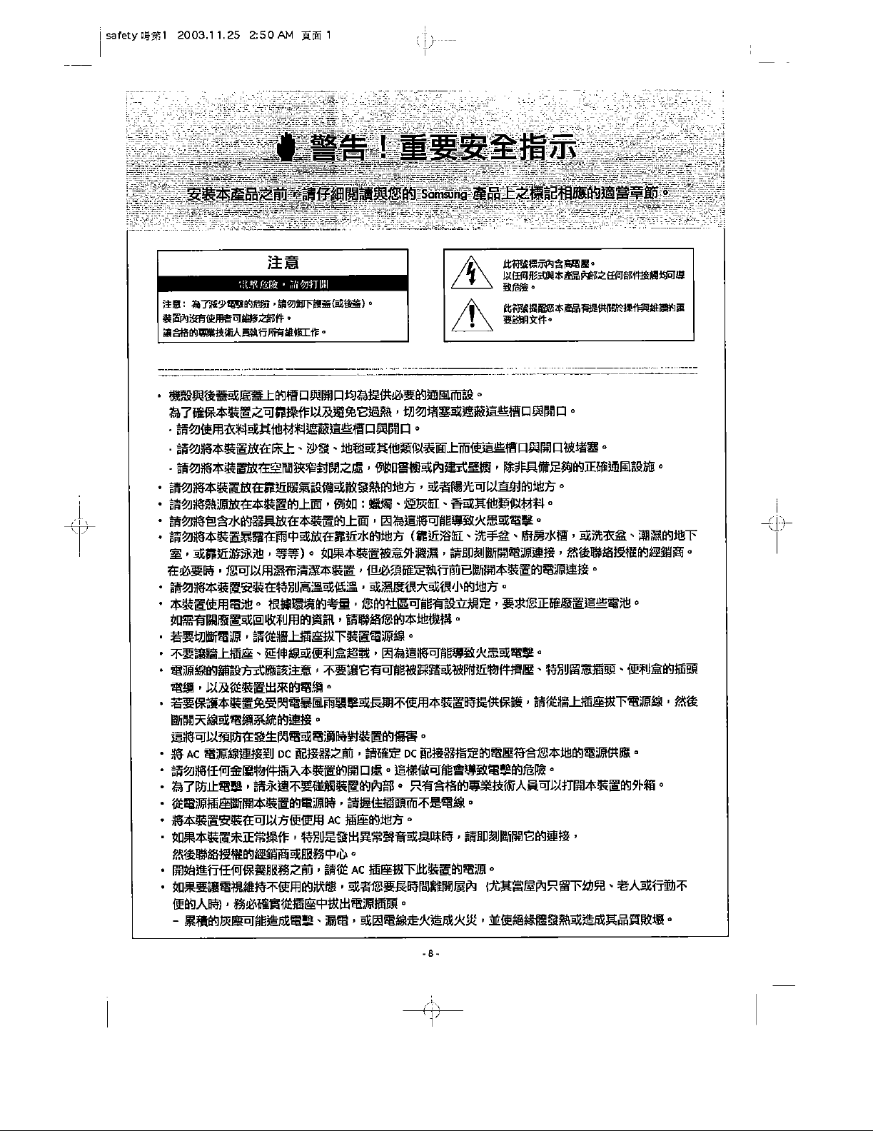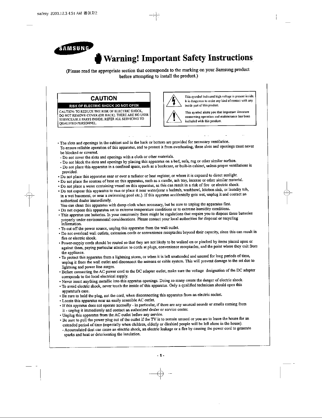 Samsung Electronics Co AT56L7 DLP Projection TV User Manual 1