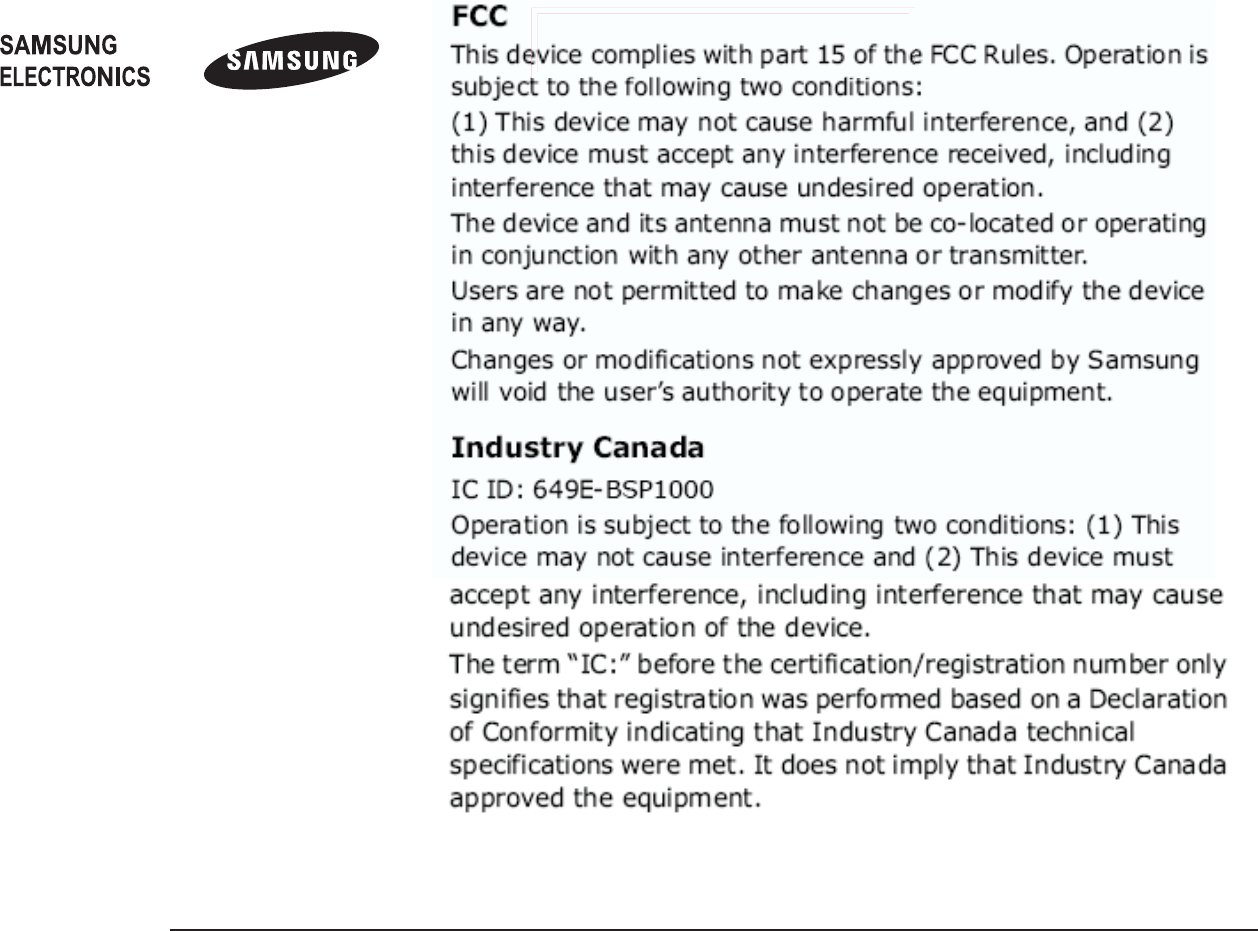 Samsung will not assume any responsibility for any loss or damage