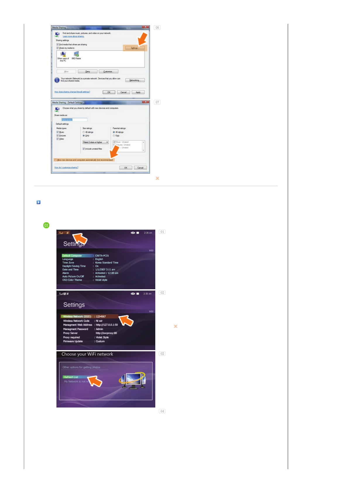 Settings for Sharing the Photos on Your PC - Configuring Your Photo Frame