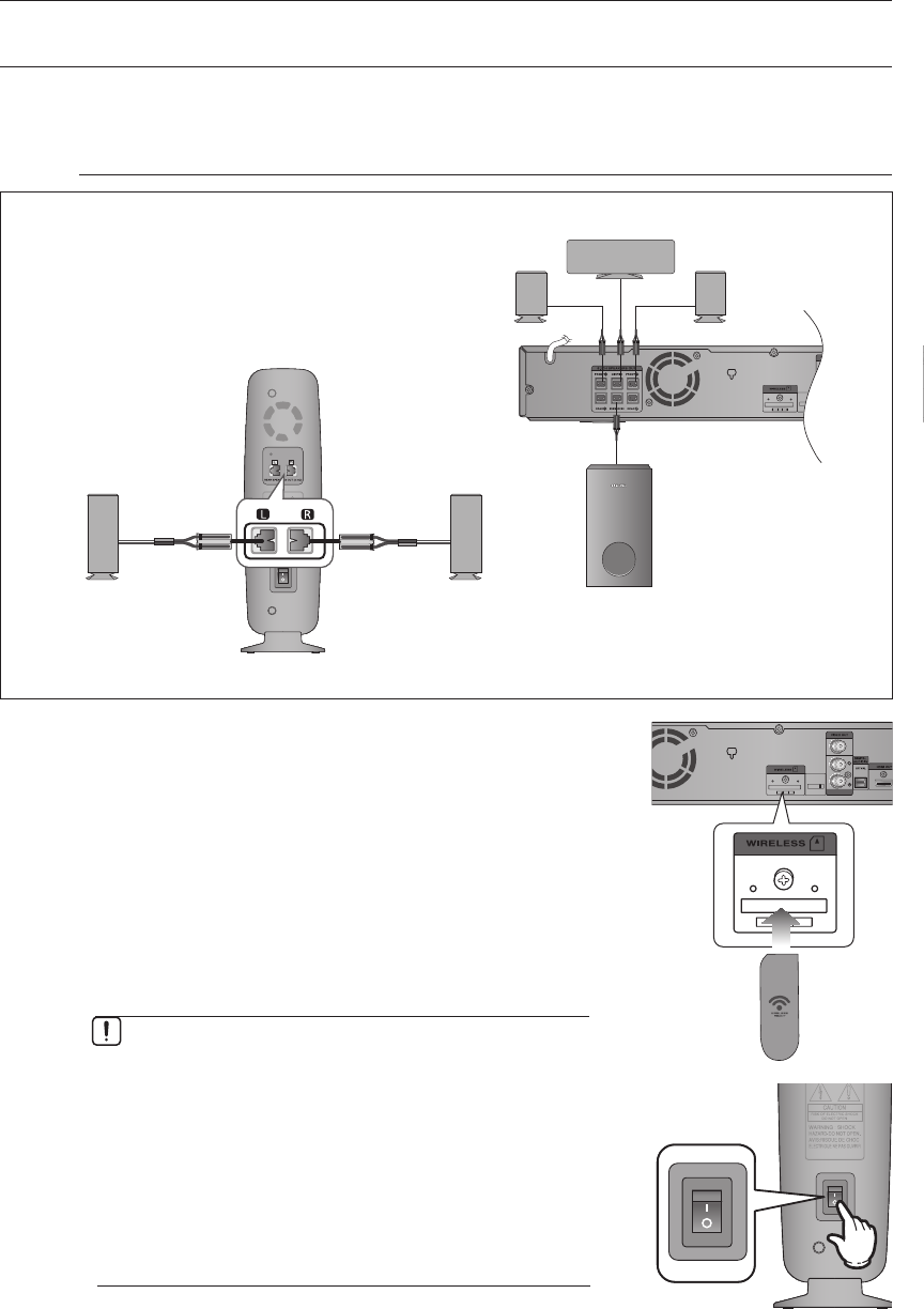 Connect the left and right rear speakers to the wireless