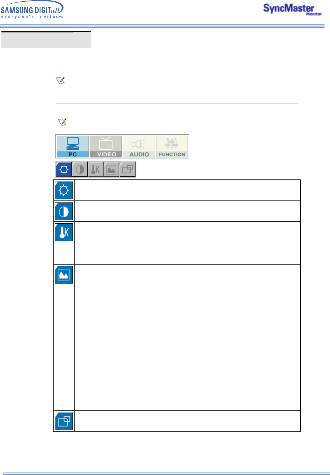 Press to self-adjust to the incoming PC signal. The values of fine,coarse and position are