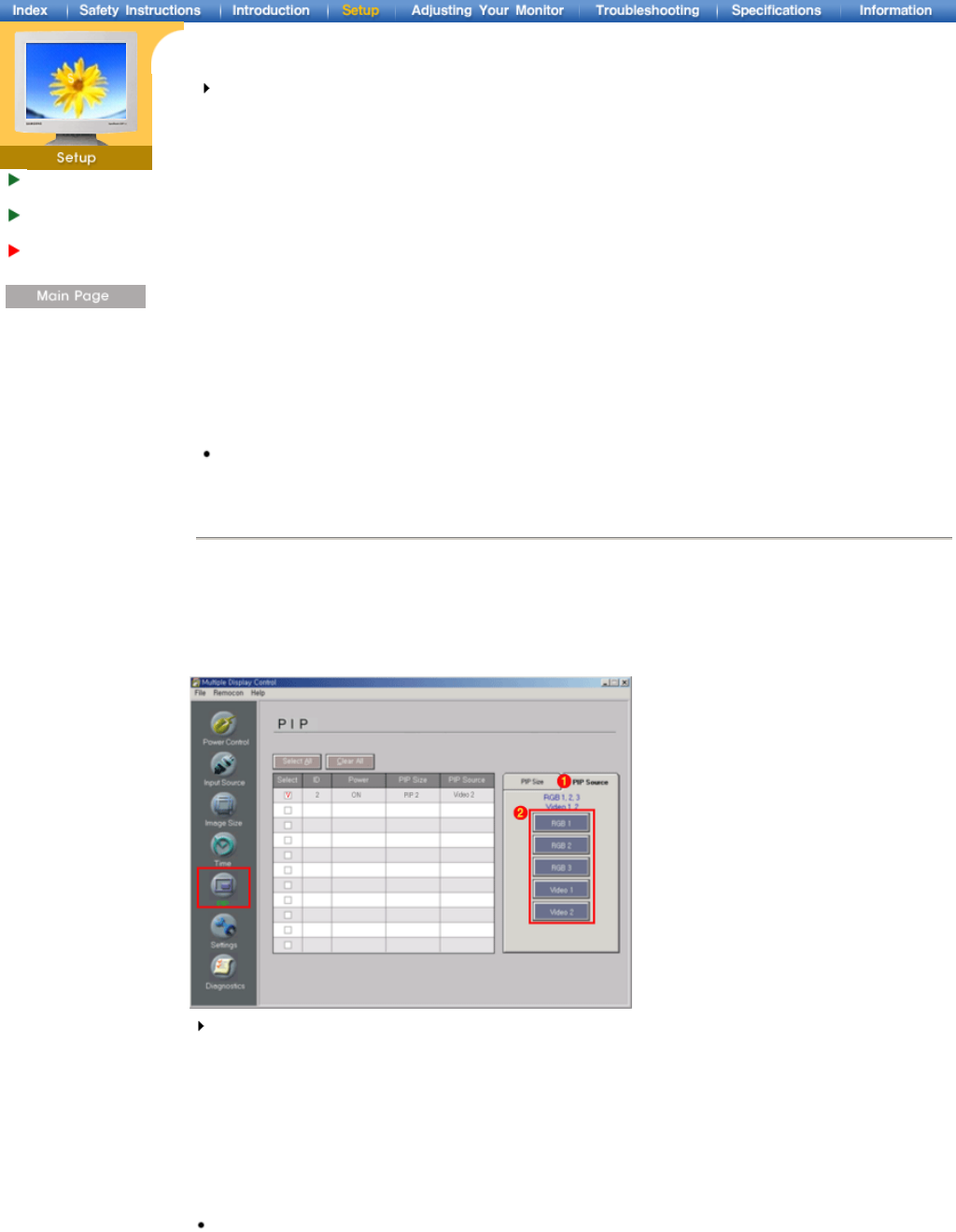 • RGB 2 : Changes the source of the PIP of the selected display to RGB 2.
