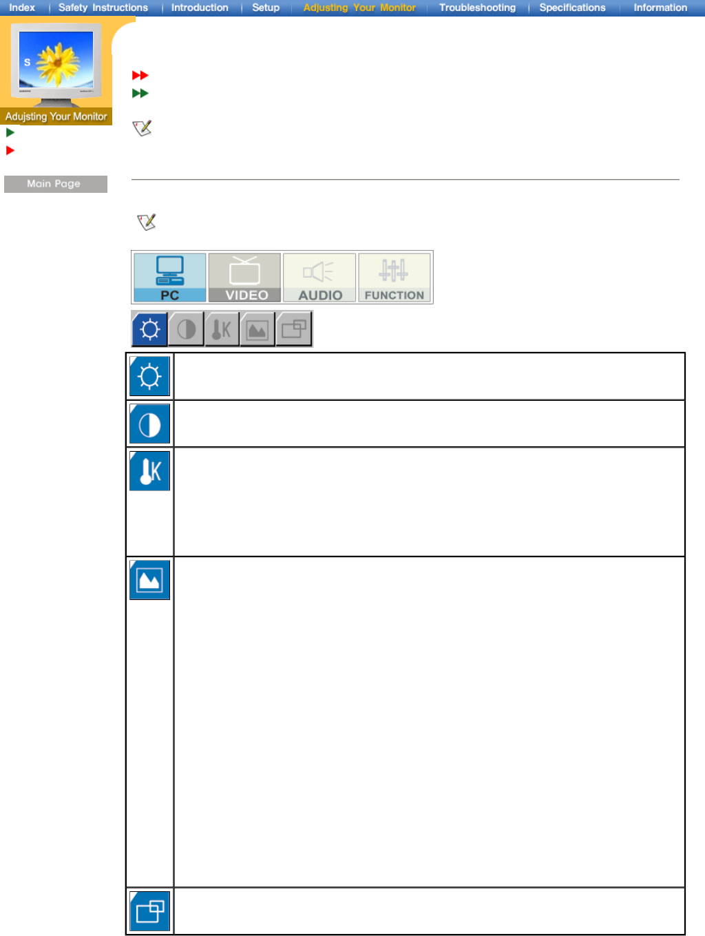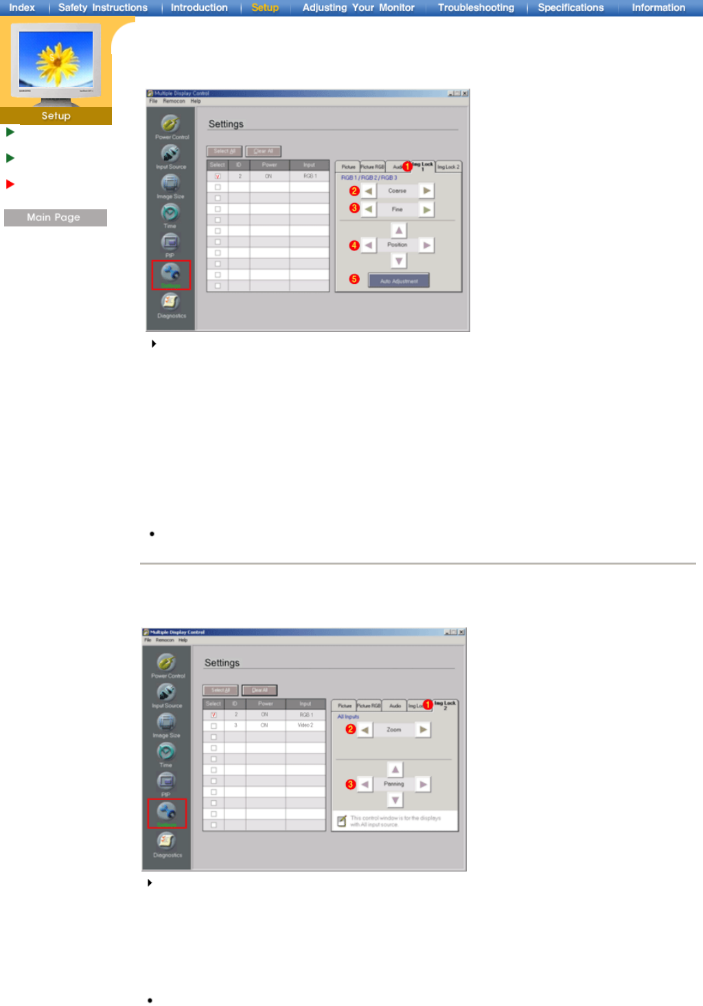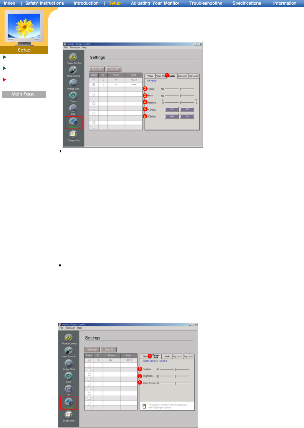 This Control window is for the displays with RGB input source.