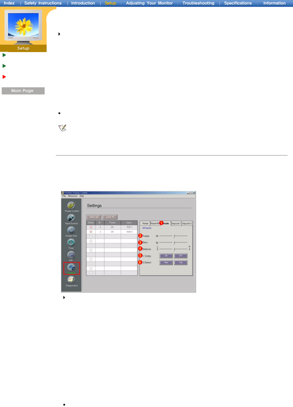 - Controls audio settings for all input sources.