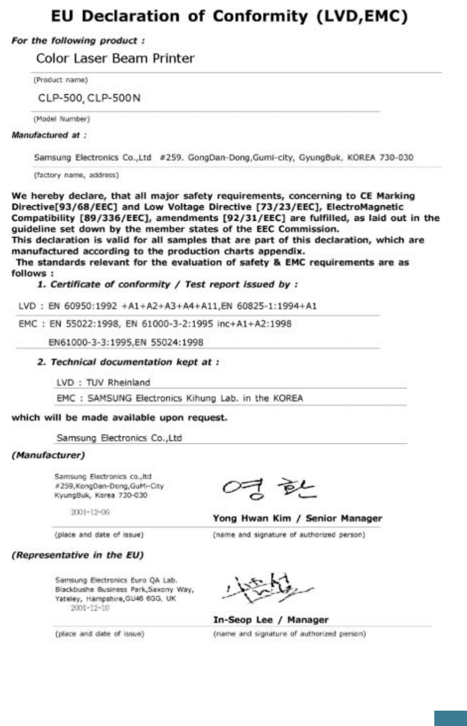 Samsung Electronics Co CLP500N Laser Beam Printer User Manual 1