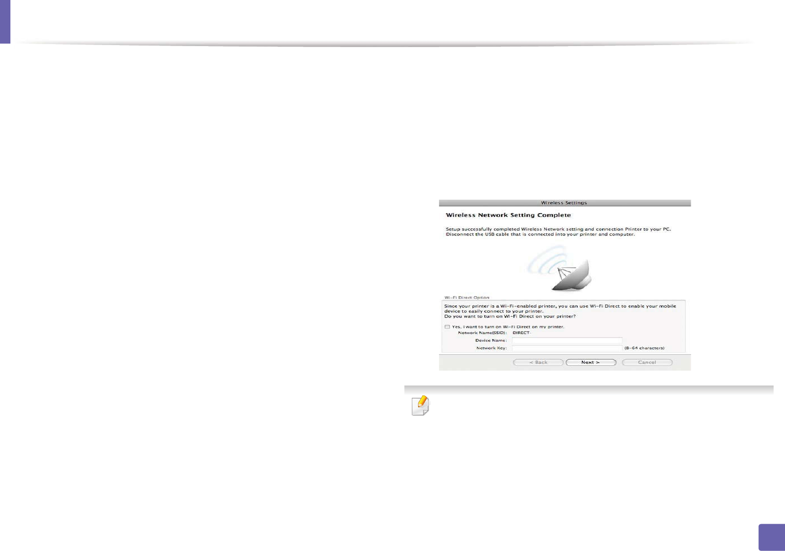 On The machine is connected to a wireless networkG(see "Wireless network setup" on page 150).