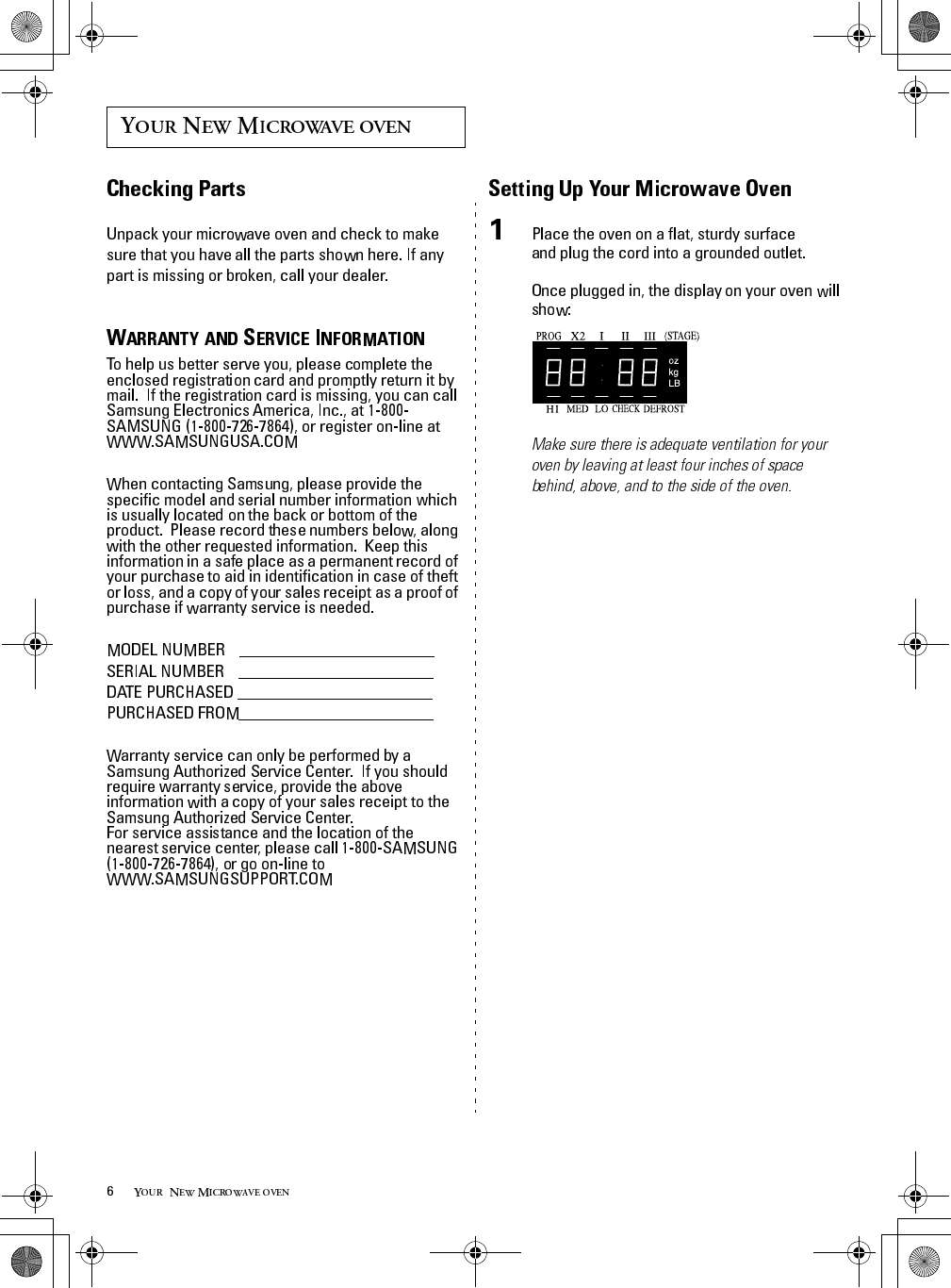 Samsung Electronics Co Ltd Microwave Oven Users Manual