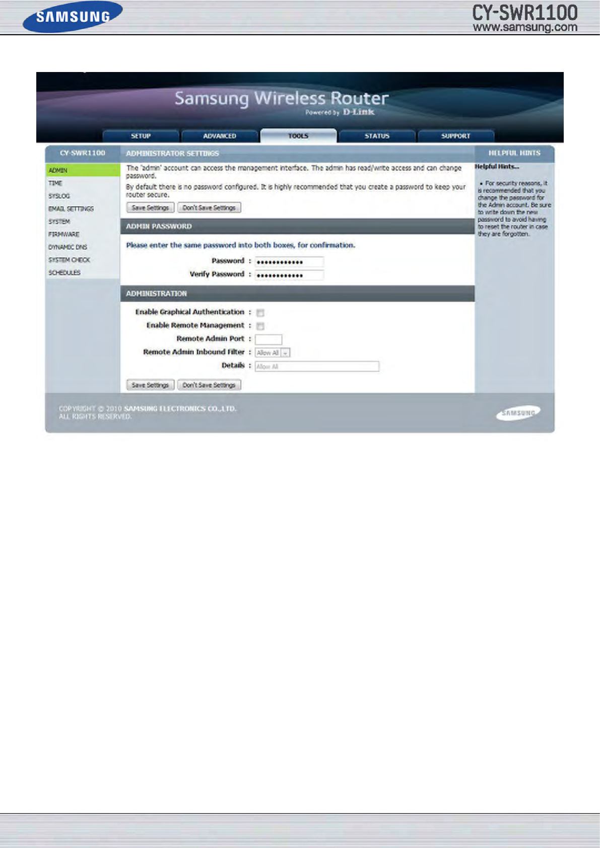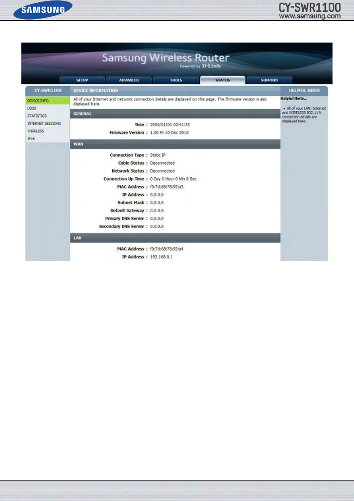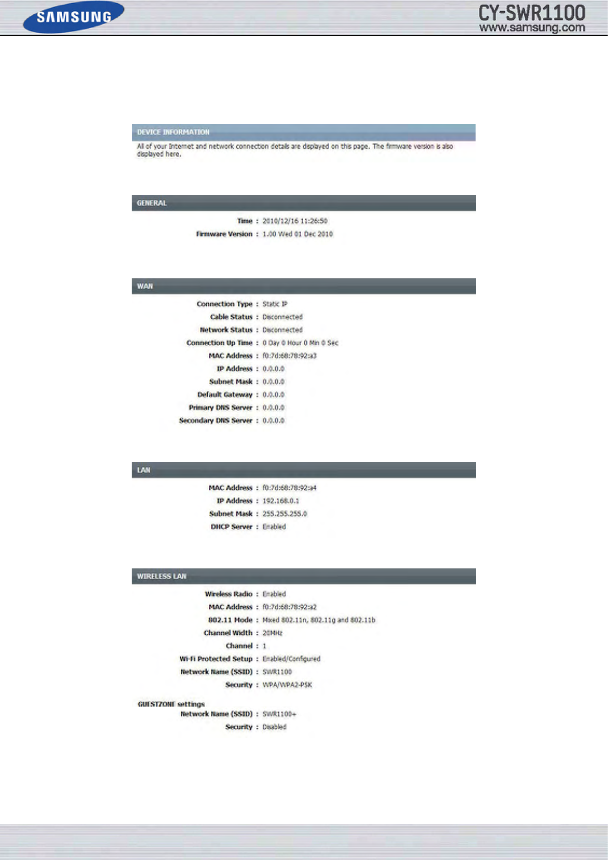 Samsung Electronics Co CYSWR1100 Wireless Router User Manual